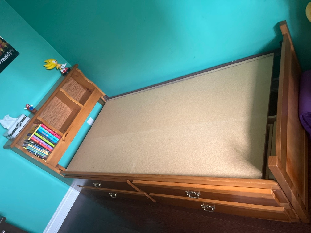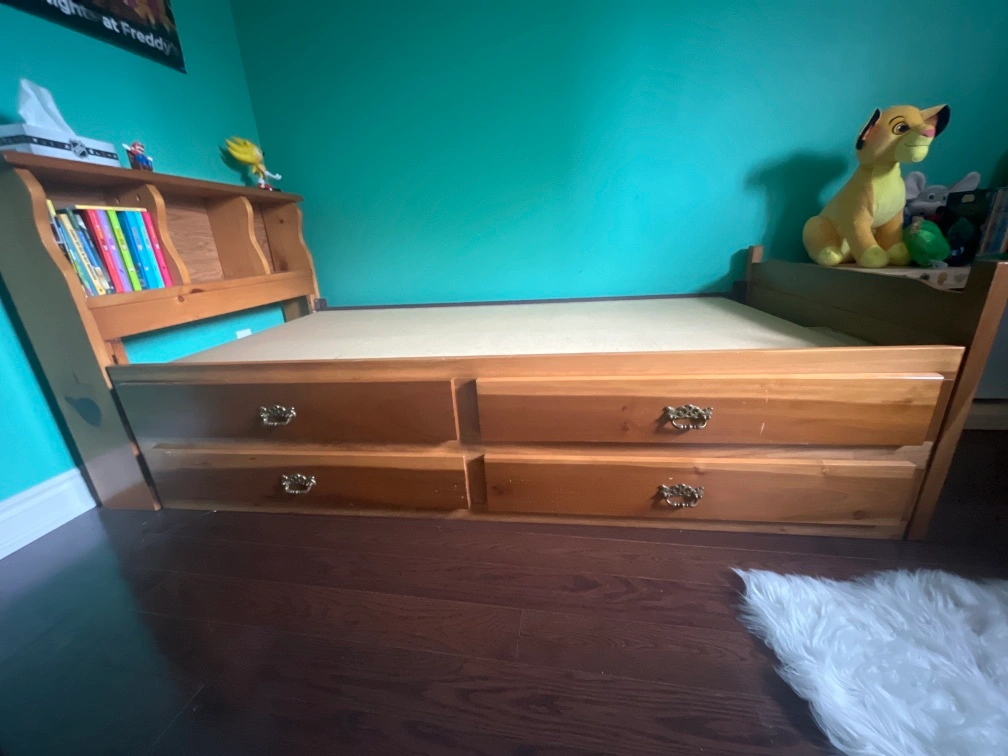 Solid pine wood single bed. Bought for over $1000. Pick up on the east end - Scarborough golf club / Kingston rd.