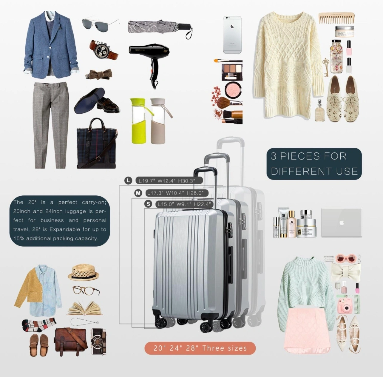 Coolife 20β Luggage Suitcase-Carry on-Travel Suitcase