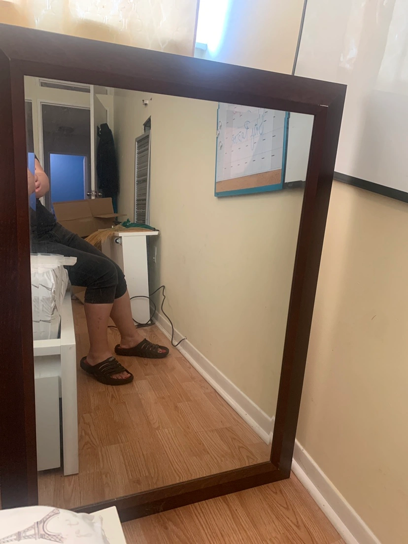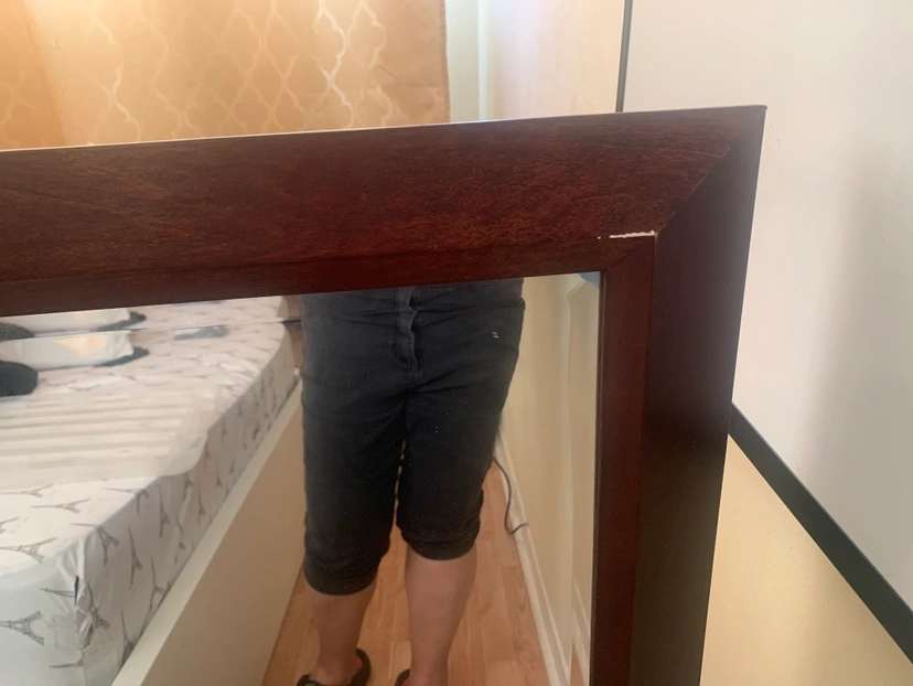 It’s one year old mirror. There is a small amount of wall paint in the corner as shown in the picture. Otherwise good as new