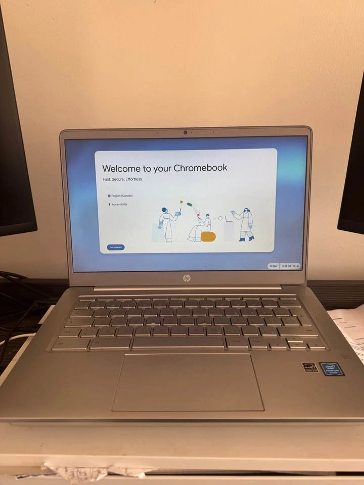Functional HP Chromebook 14a with Intel Pentium Silver processor. Great for school work or just browsing the web. Silver color. Includes USB-C charger.