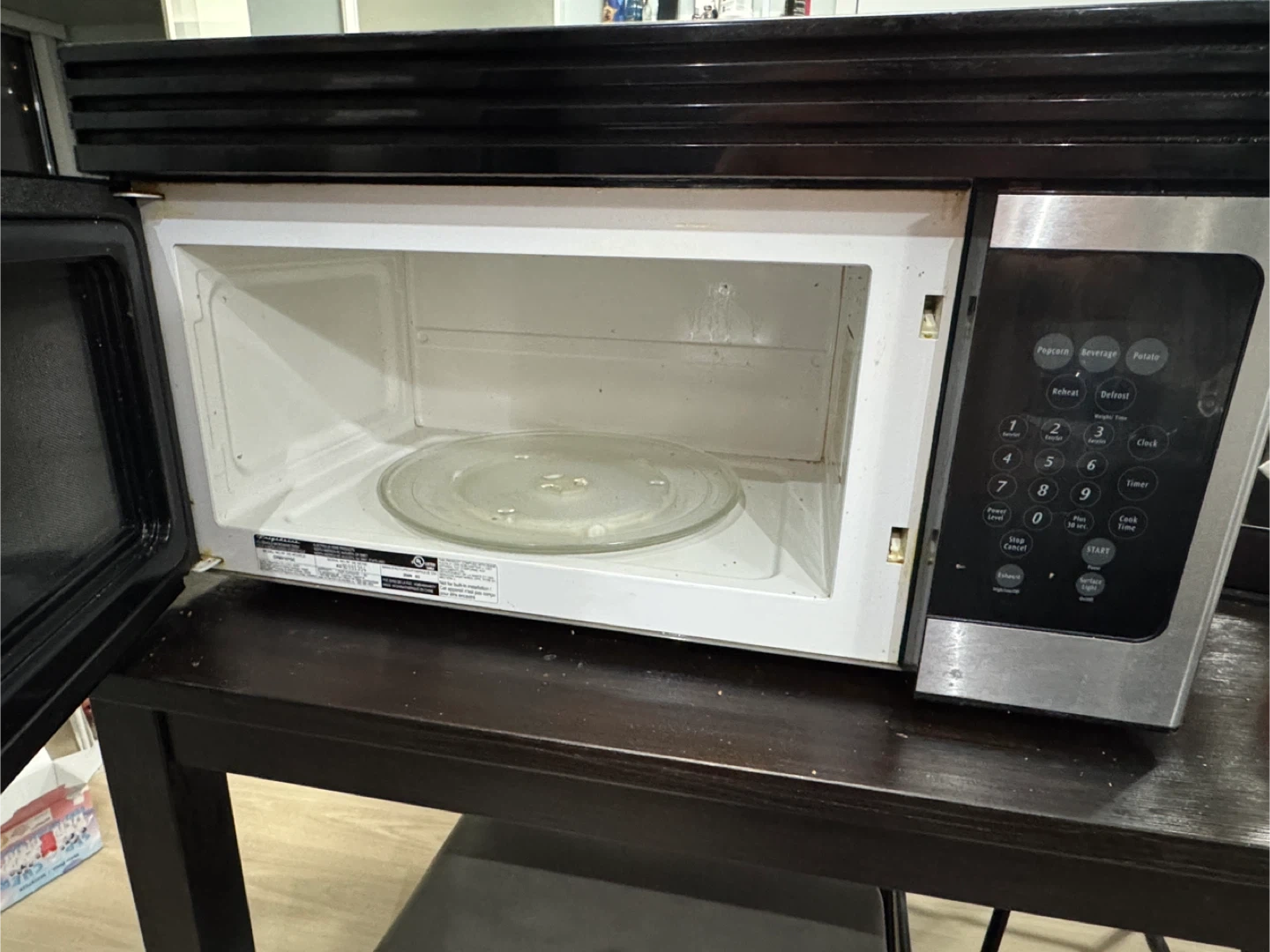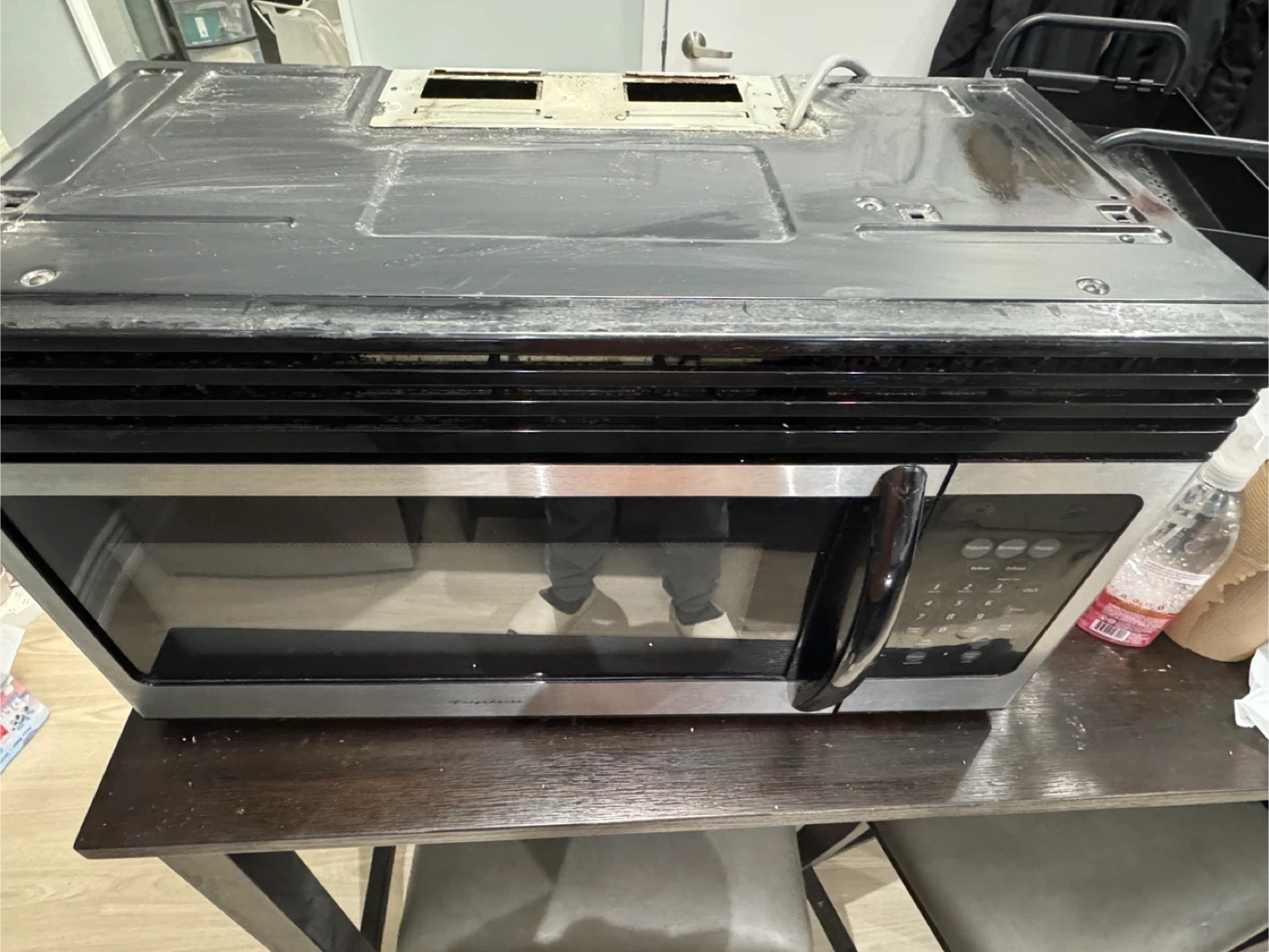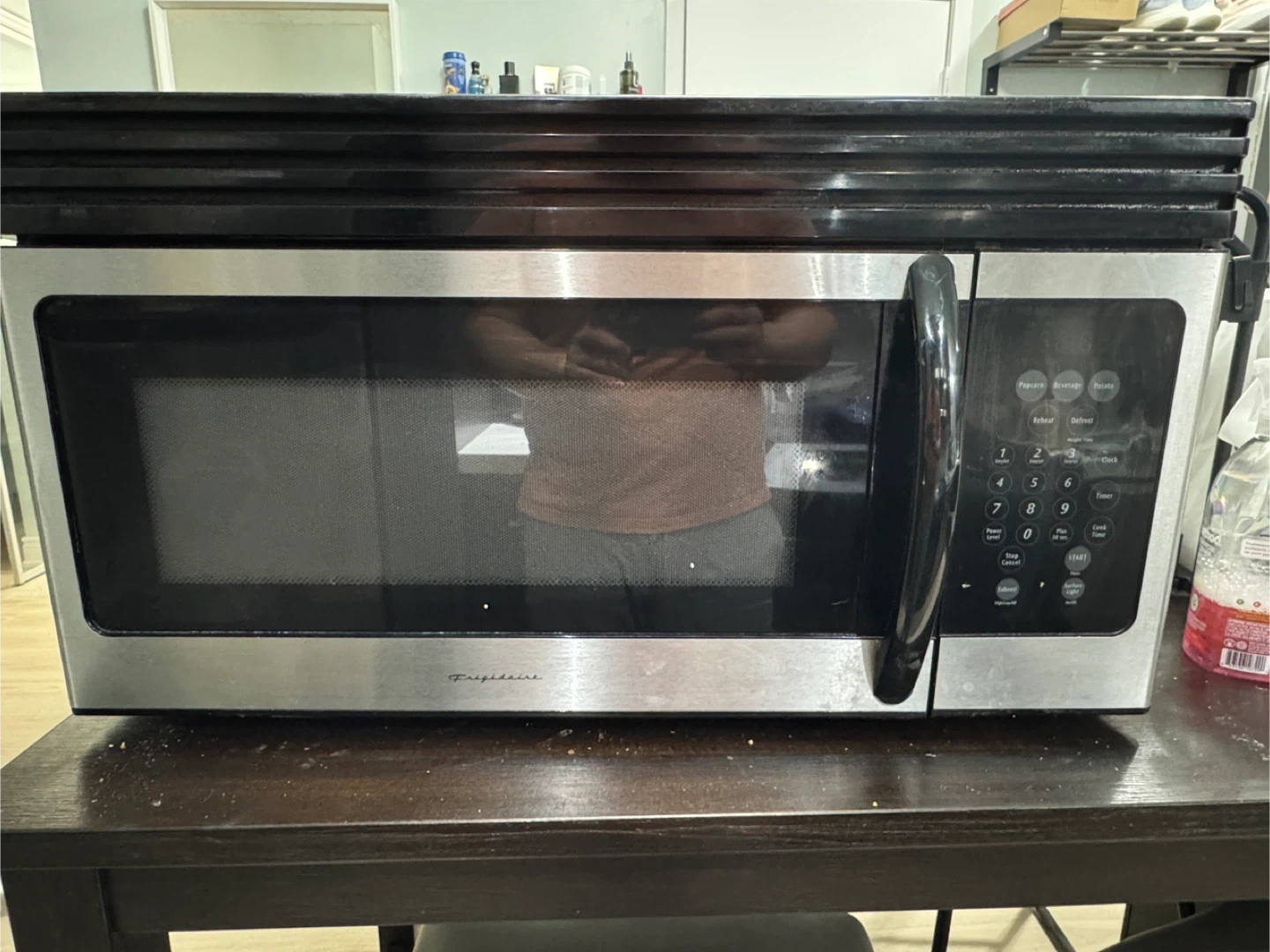 This Frigidaire microwave features a stainless steel finish. It includes a glass turntable. It's an over the hood, perfect for heating up meals quickly.