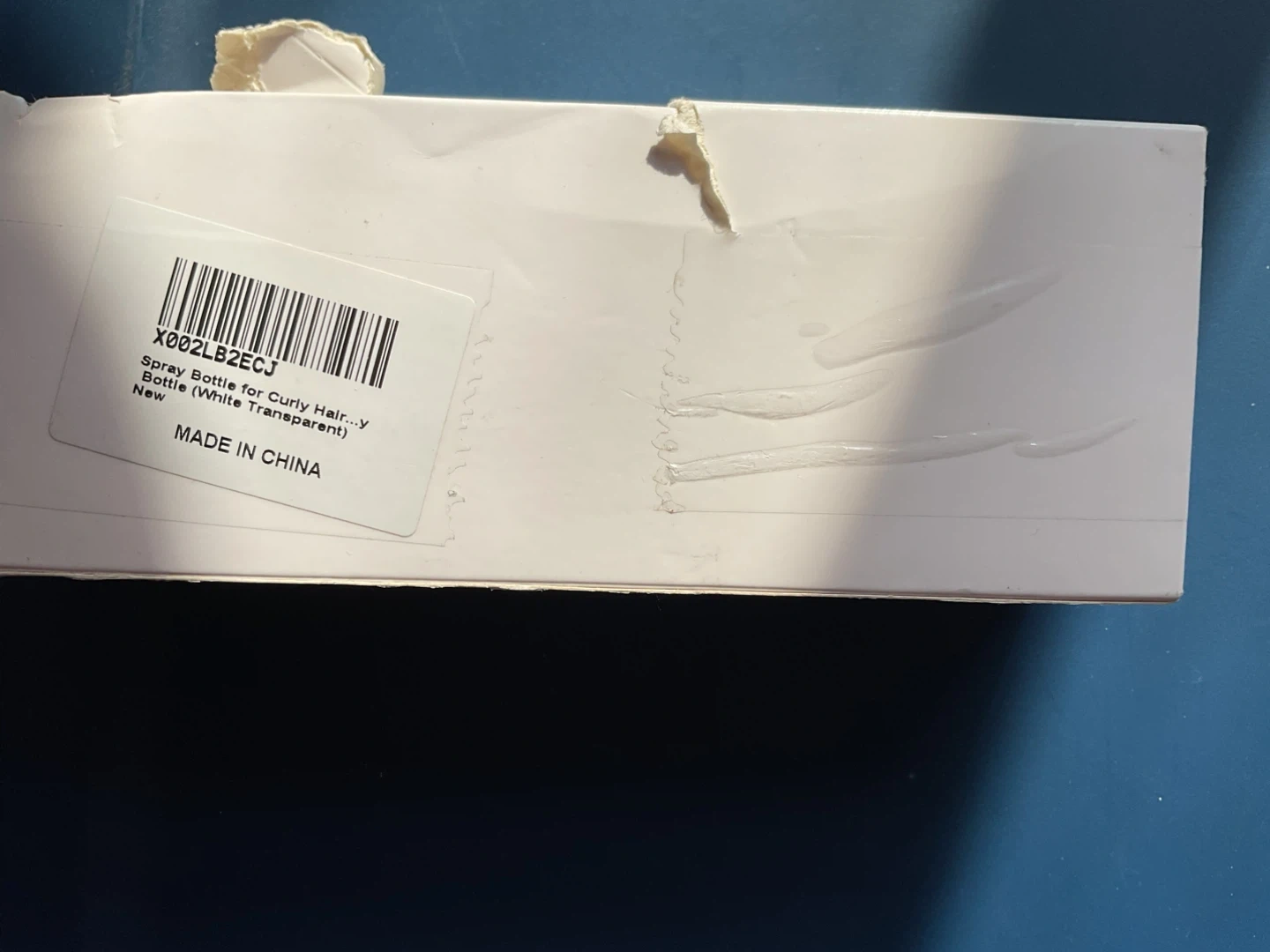 This is a spray bottle for curly hair. It's made of transparent plastic and has a white sprayer. It's great for misting hair evenly.