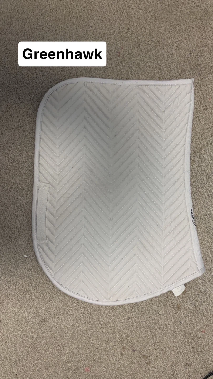 Selling a Greenhawk saddle pad in white! It has a nice quilted pattern. Great for any equestrian enthusiast looking for a quality saddle pad!