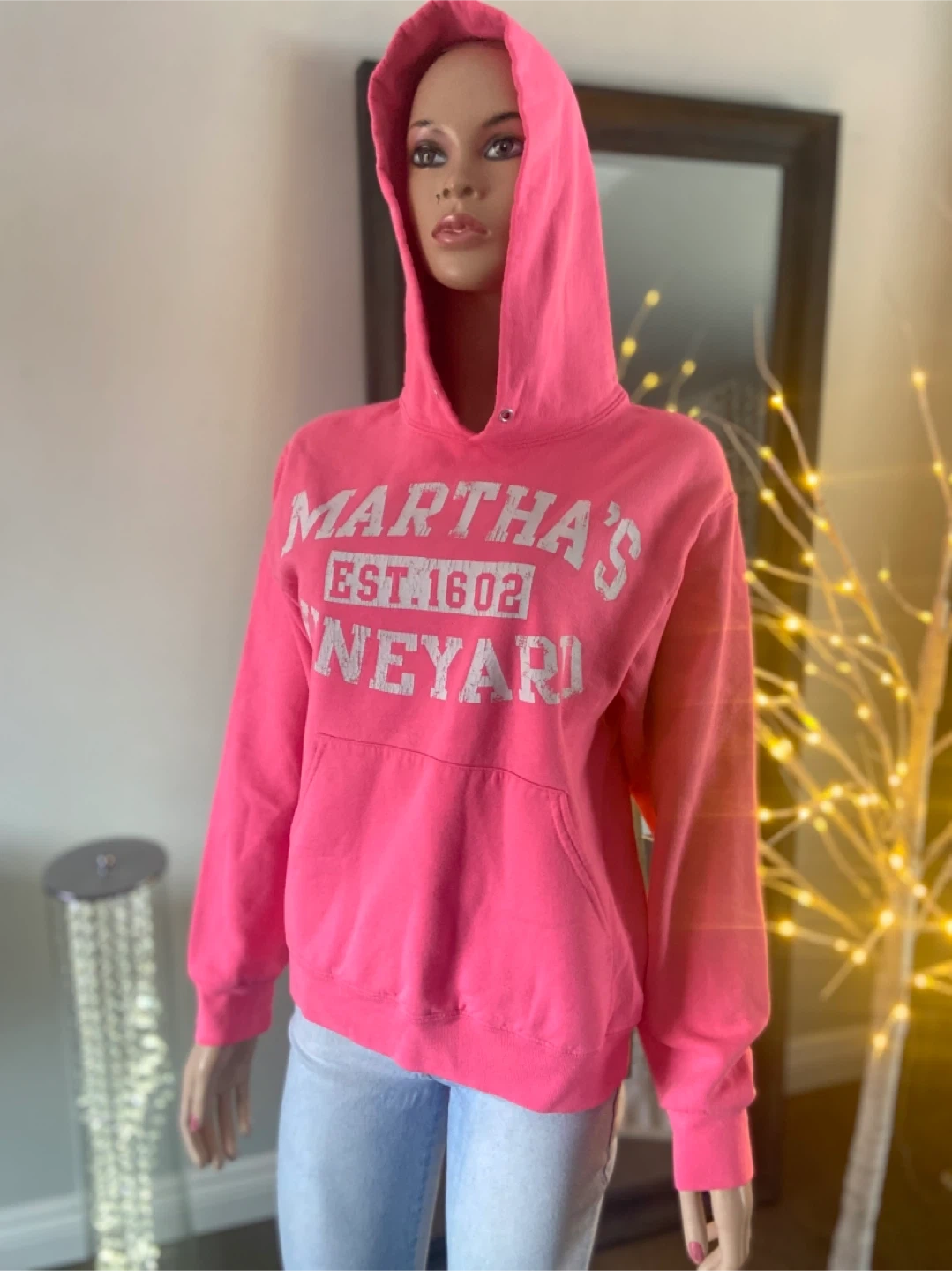 This vibrant hot pink Martha's Vineyard hooded sweatshirt