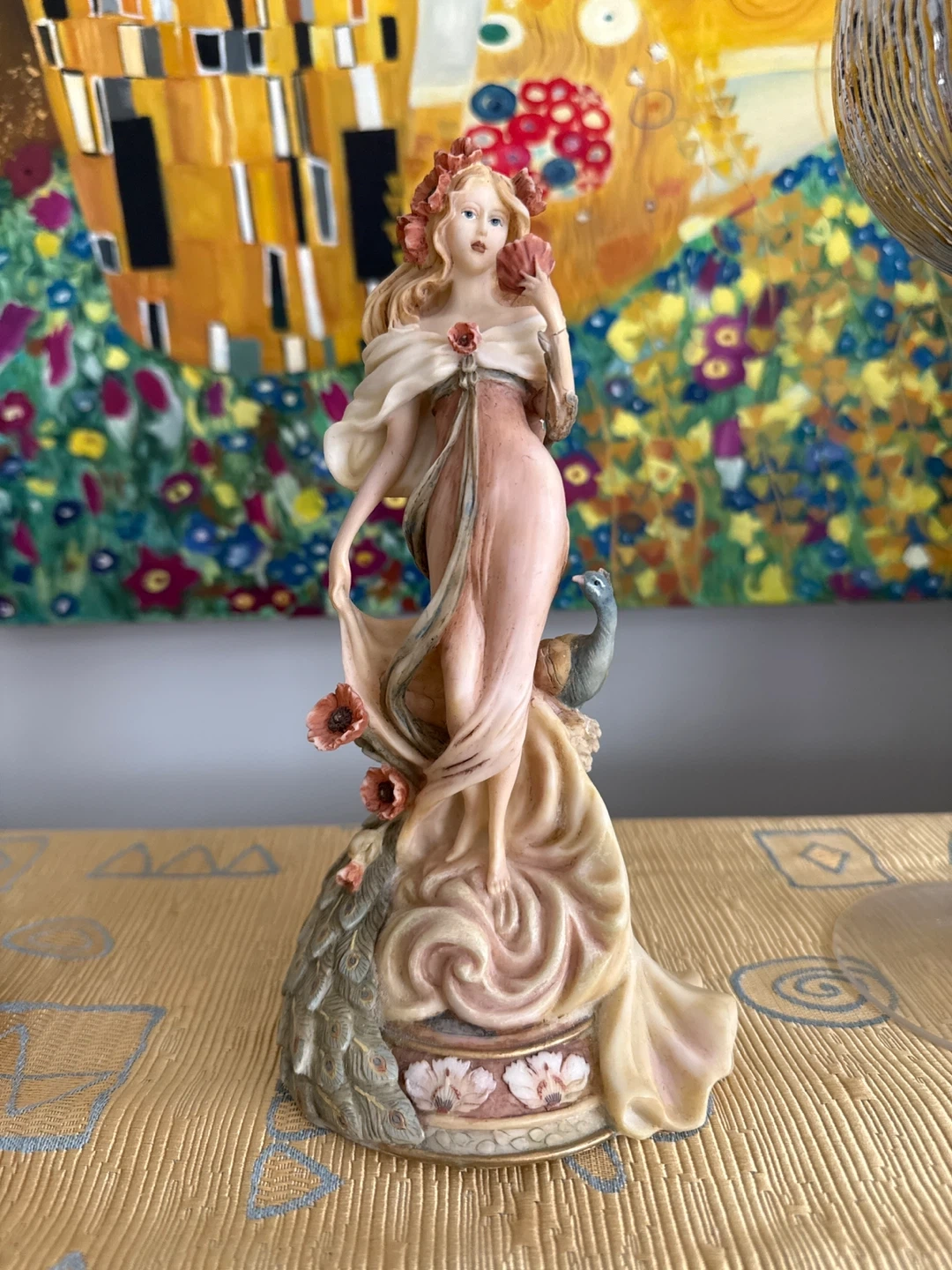 Nouveau classique Figurine of a Woman with Peacock