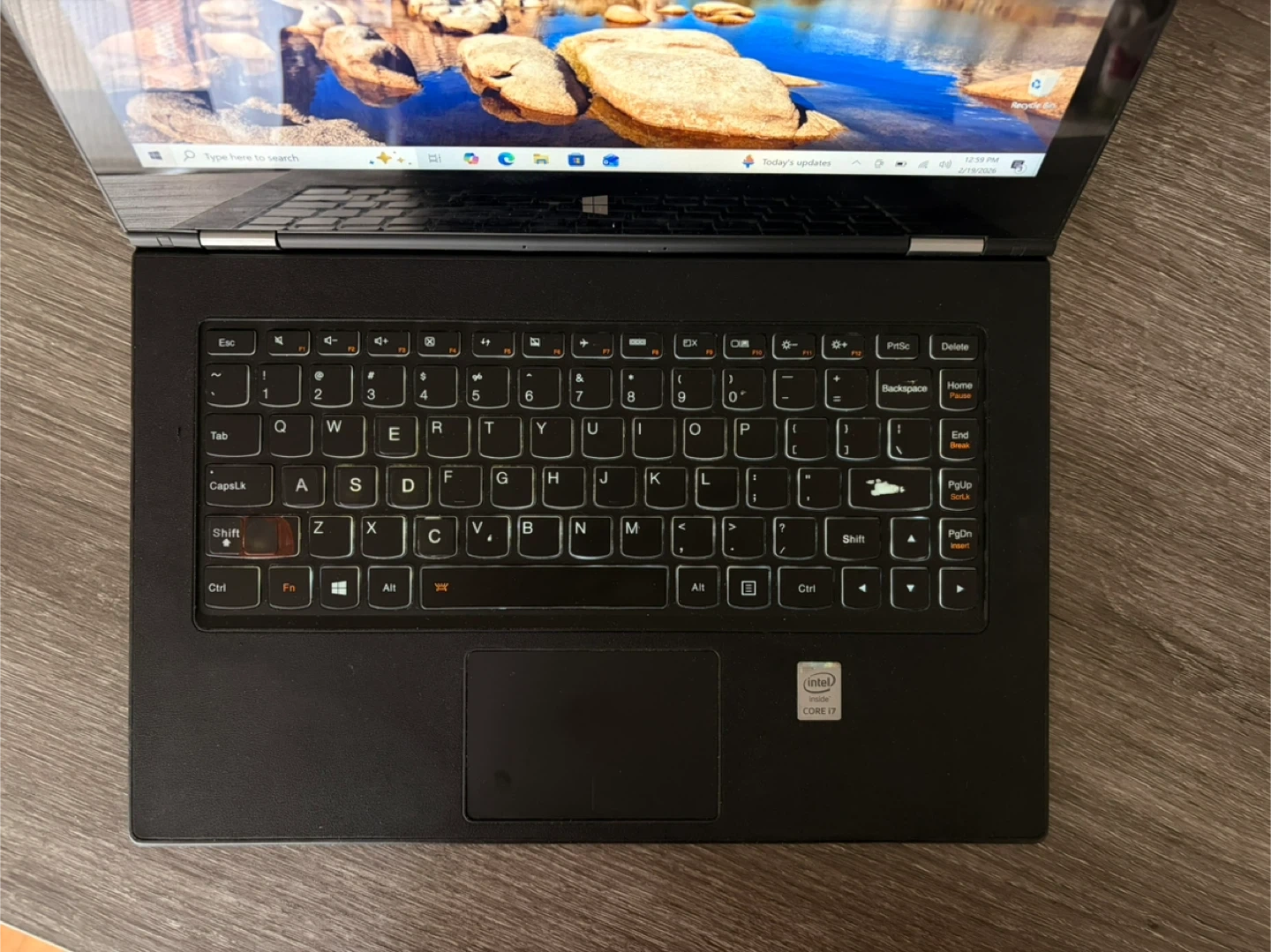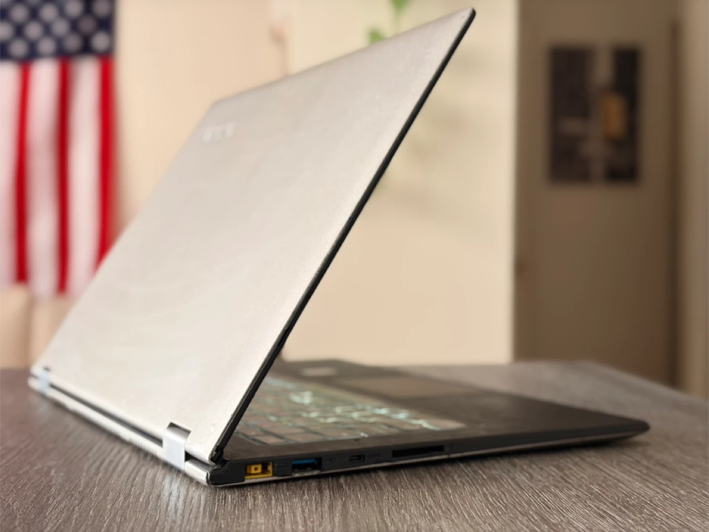 This is a Lenovo Flex 4 2-in-1 convertible laptop. It features a backlit keyboard and an Intel Core i7 processor. It's a versatile device that can be used as both a laptop and a tablet.