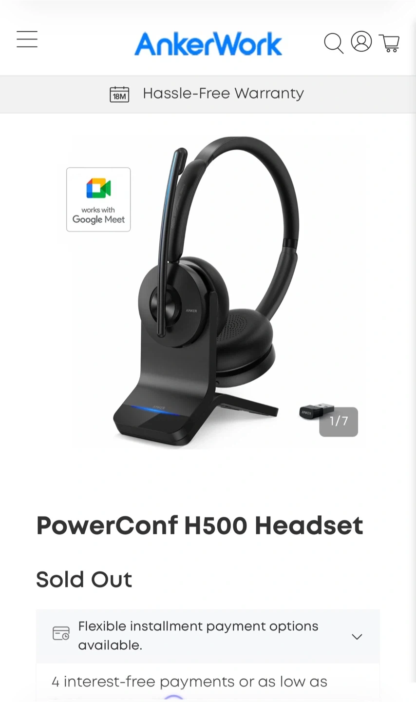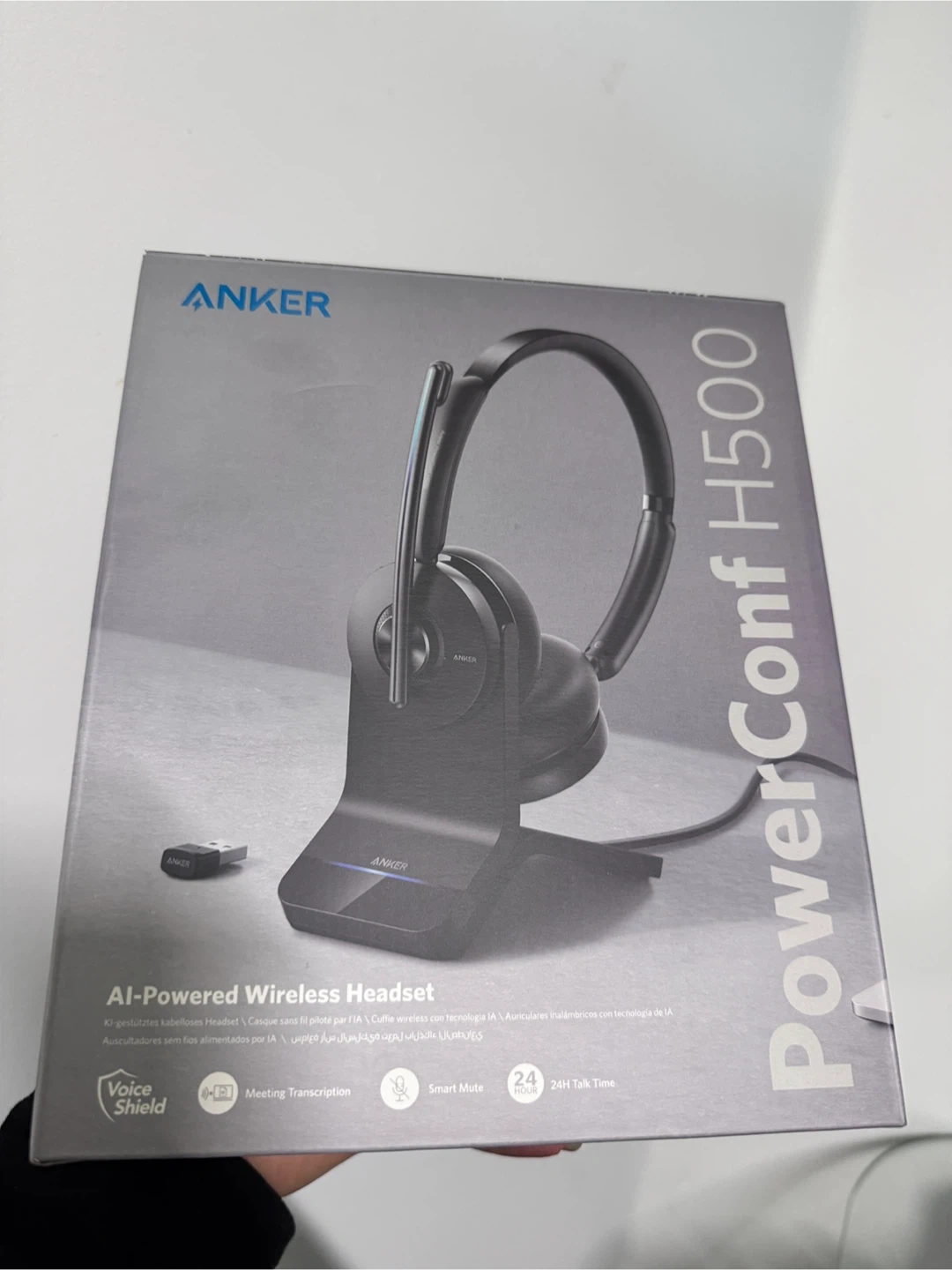 This AnkerWork PowerConf H500 headset offers AI-powered wireless communication. It features Voice Shield technology for clear calls and a 24-hour talk time. It's compatible with leading video conferencing platforms.