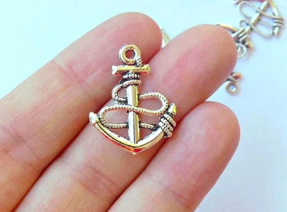 Here are some lovely anchor charms. Perfect as a charm for earrings, bookmarks, zipper pulls, key chains, or on a charm bracelet. Great for adding to bracelets as a connector too :) Size: 24mm x 19mm You will receive a set of 24 of these lovely anchor charms.