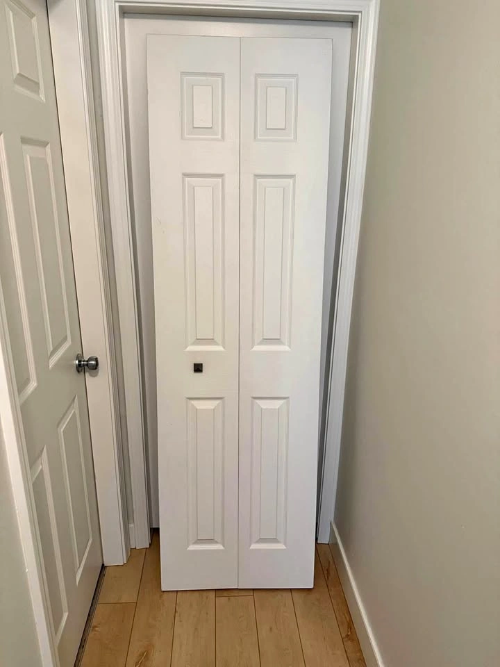 Painted and ready to go! Includes track, hardware, and door knob.