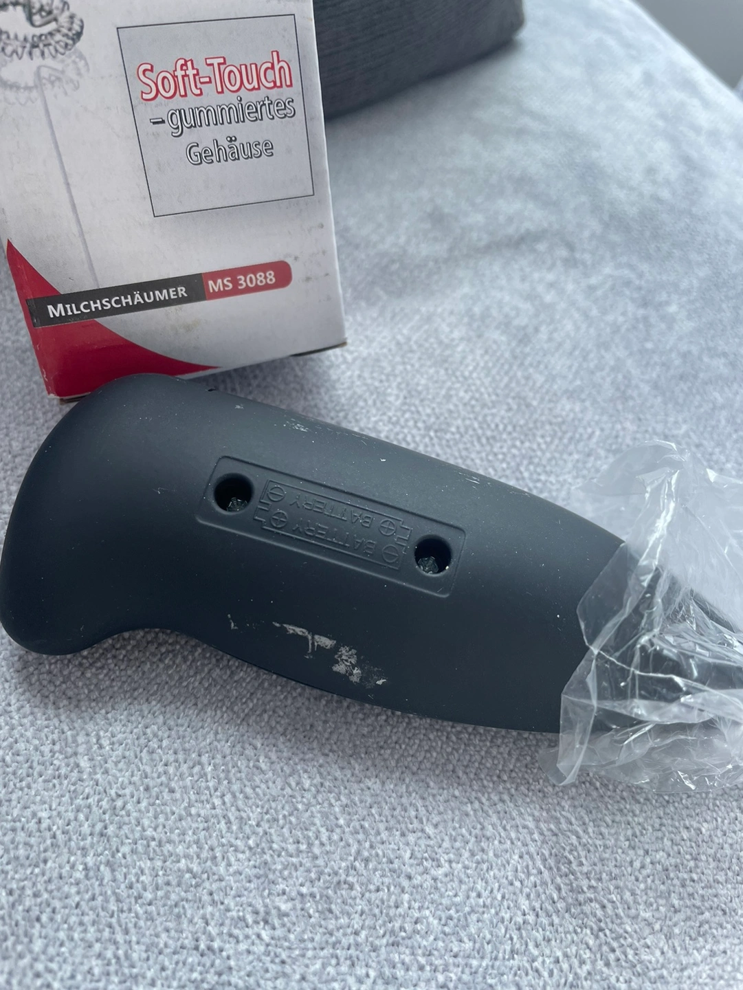 Brand new but there is a scuff on the handle. Battery included (2 AA)