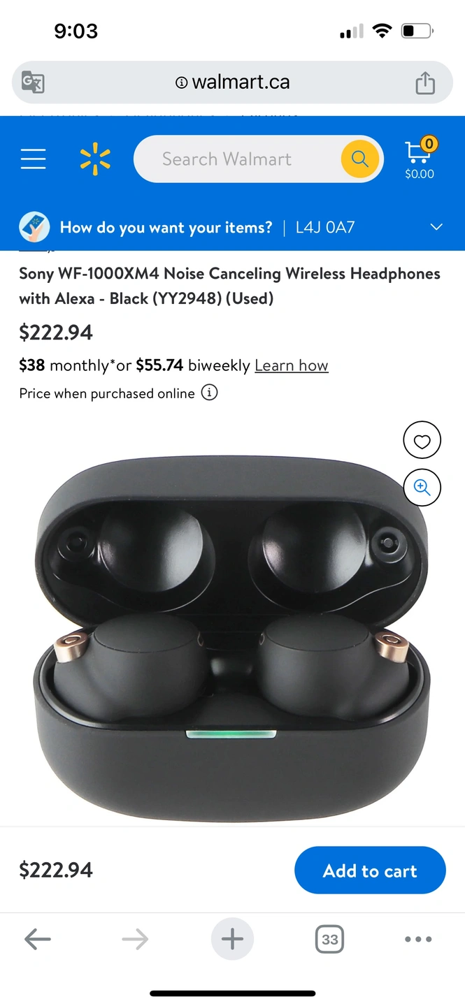 https://www.walmart.ca/en/ip/Sony-WF-1000XM4-Noise-Canceling-Wireless-Headphones-with-Alexa-Black-YY2948-Used/6FPGFFRIMYW9?offerId=828D43BA07014BAB883198902DD36001&cmpid=SEM_CA_33367_RKHMIOQZRL&utm_id=SEM_CA_33367_RKHMIOQZRL&utm_medium=paid_search&utm_source=google&utm_campaign=always_on&gad_source=1&gbraid=0AAAAADv6L0T3m2k3_8urcV88yD4g__mFT&gclid=CjwKCAjw4f6zBhBVEiwATEHFVmE94wPZsghTFhb5y4RR2z1pVerjb1vX1zbBAvOVQIDIp9hkFOz1pBoCz5QQAvD_BwE&gclsrc=aw.ds