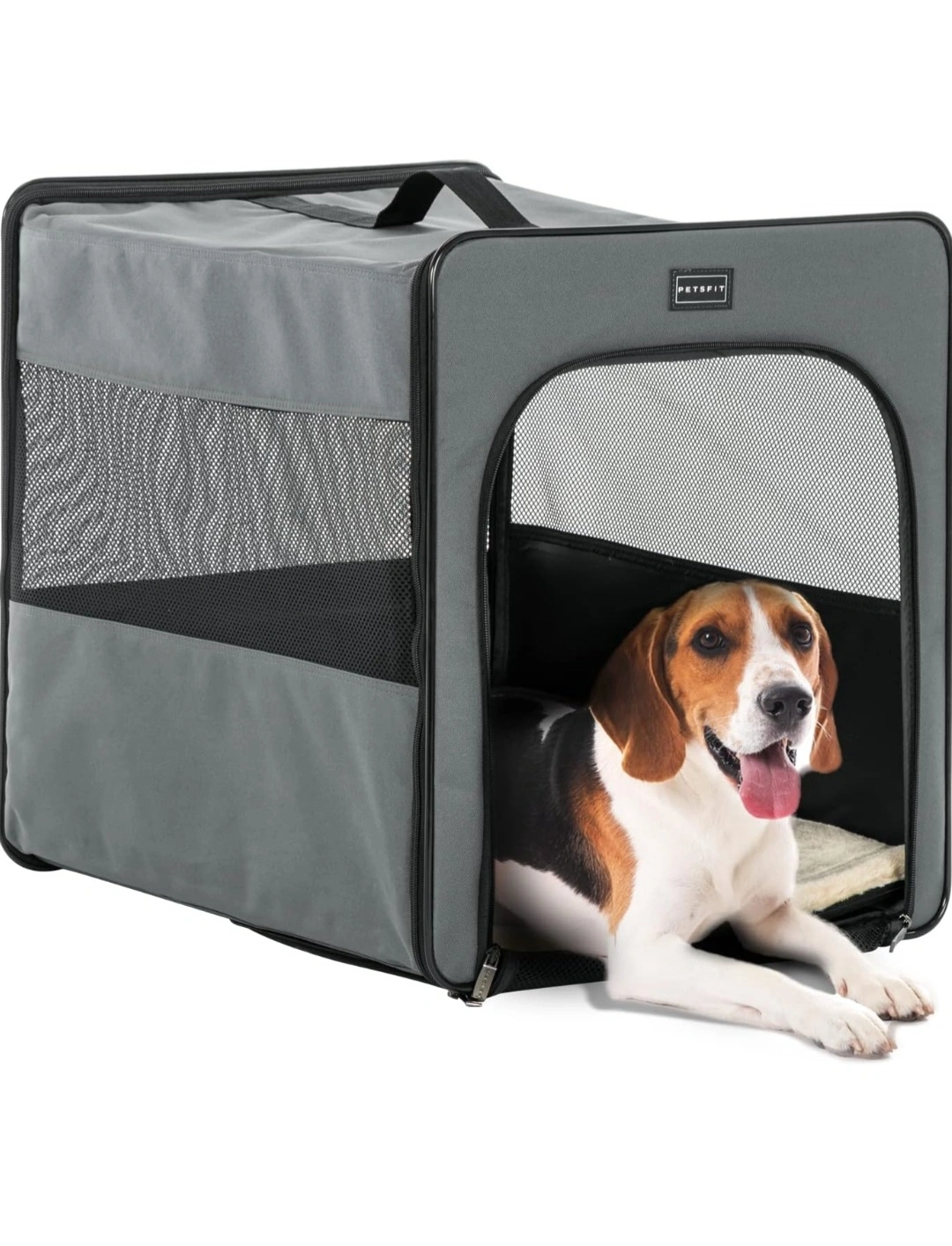 Petsfit Sided Dog Crate, Chewproof Design Breathable, Grey