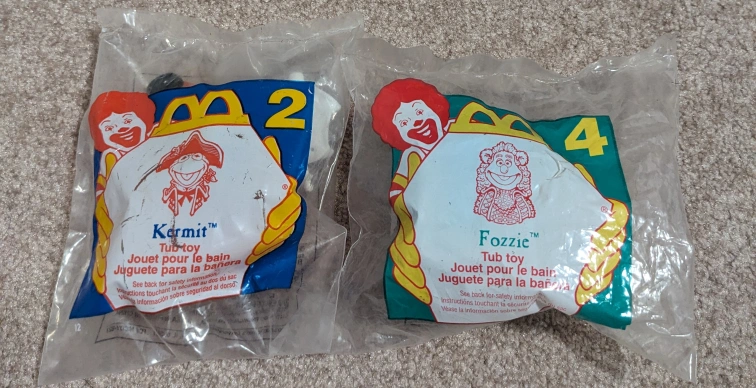 Meal Tub Toys Vtg Treasure Island #4 FOZZIE and #2 Kermit The Frog Tub Toy Muppet Treasure Island are unopened and sealed. $1 each of them or trade unopened Happy meal toy.