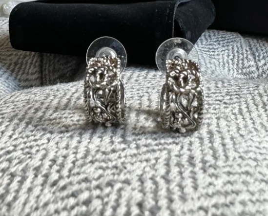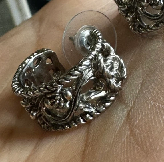 Authentic Chanel Silver Filigree Hoop Earrings