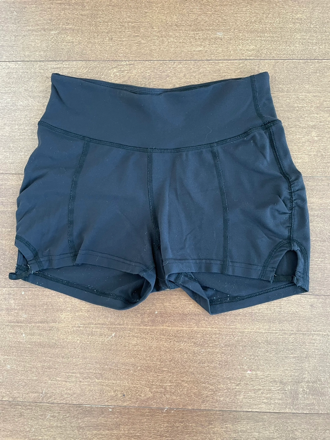 Black workout shorts. There’s a small pocket on the waist (picture 3). Unknown brand. Fits XS - S. Freshly washed.