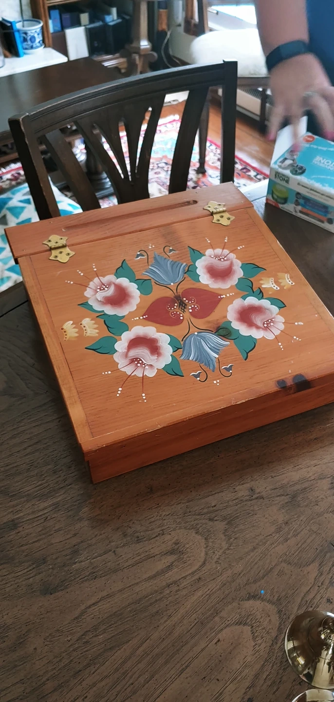 Vintage Hand painted Solid Wood Writing Lap Desk