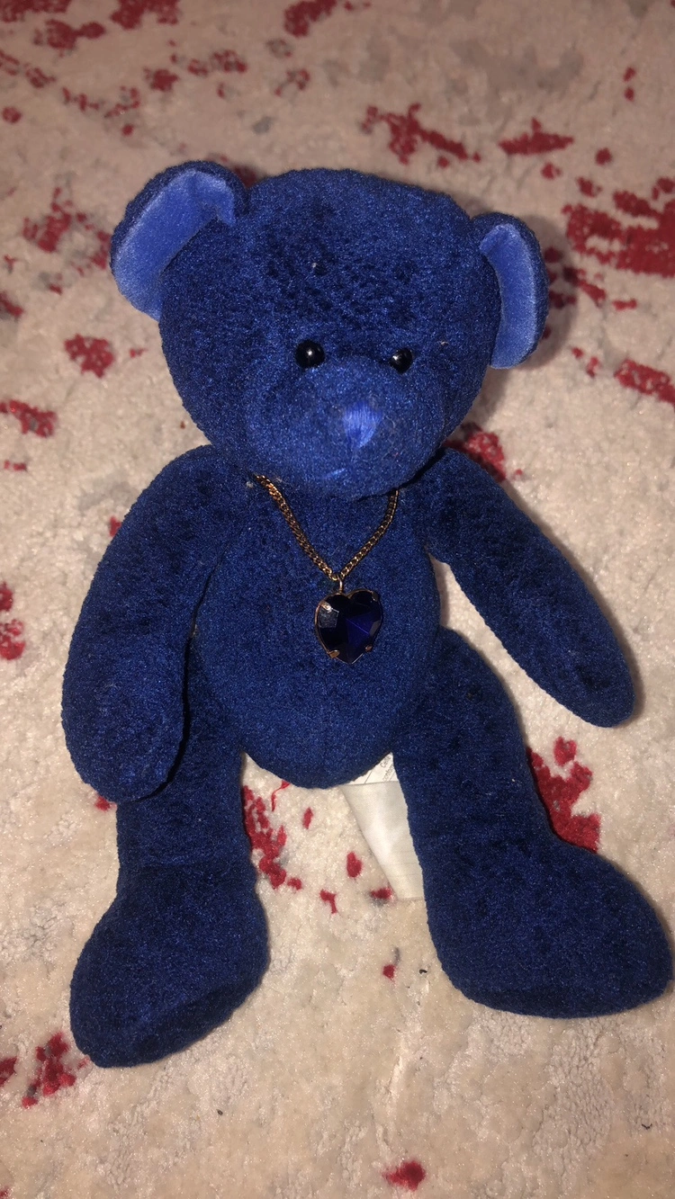 No stains or marks, it's from a line of birthstone bears that came out a while ago. Not sure if they're still in circulation.