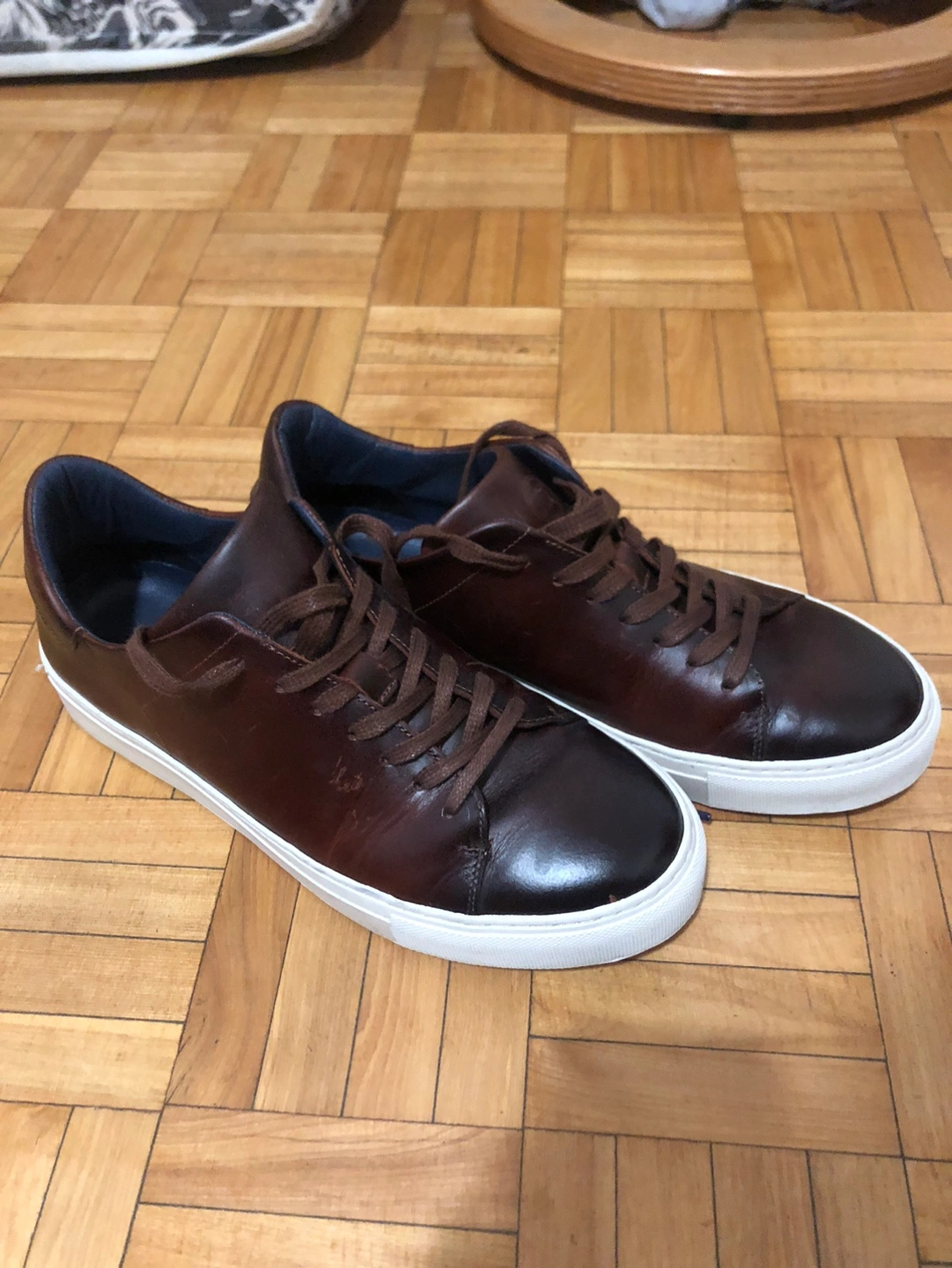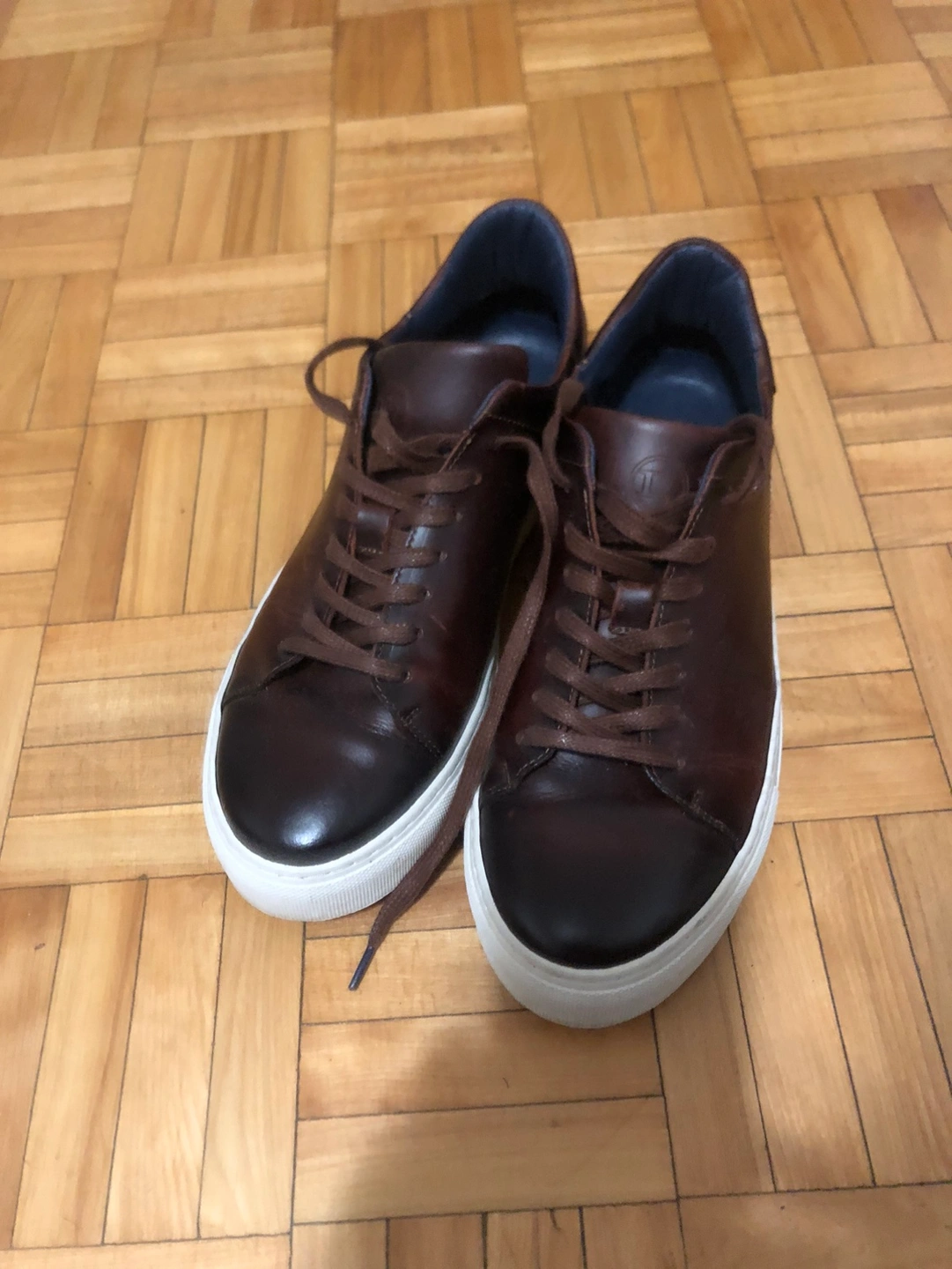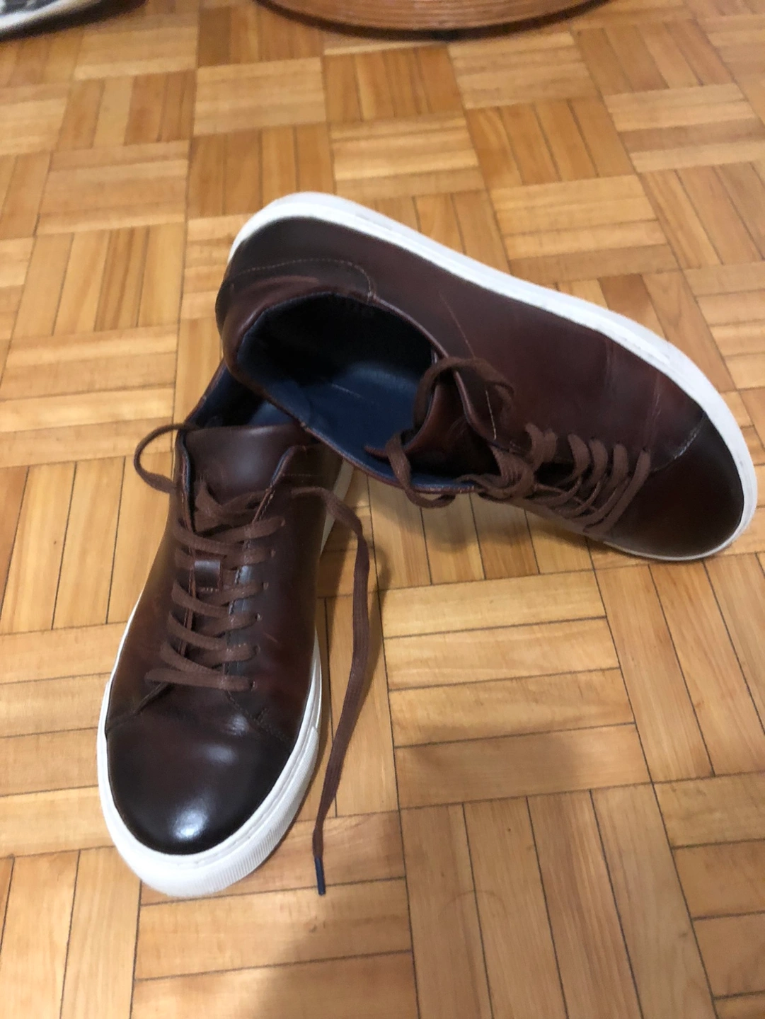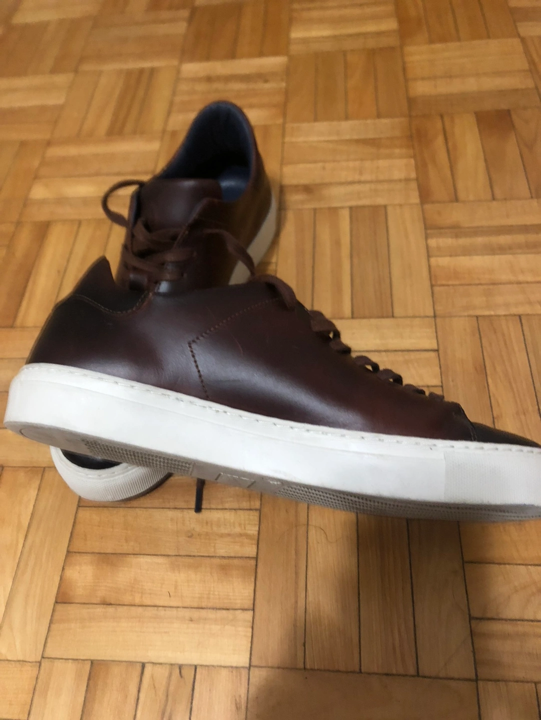 Beautiful brown leather sneakers. Pictures do not do them justice. Like new. Haven’t been broken in yet. Slightly big for my son, he wears sz 9 but they fit like 9.5 or 10. Text me and come have a look and try them on, you will love them.