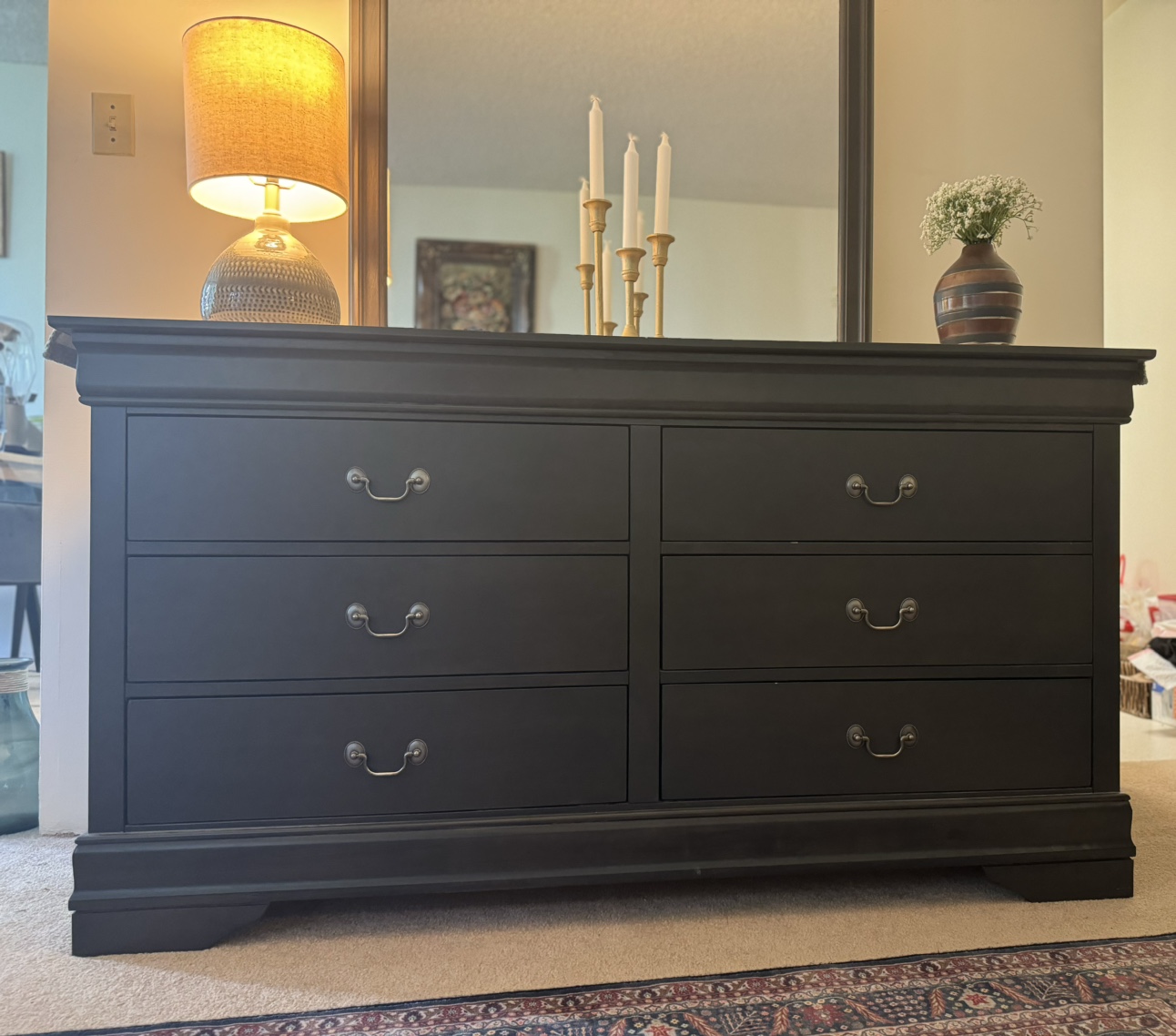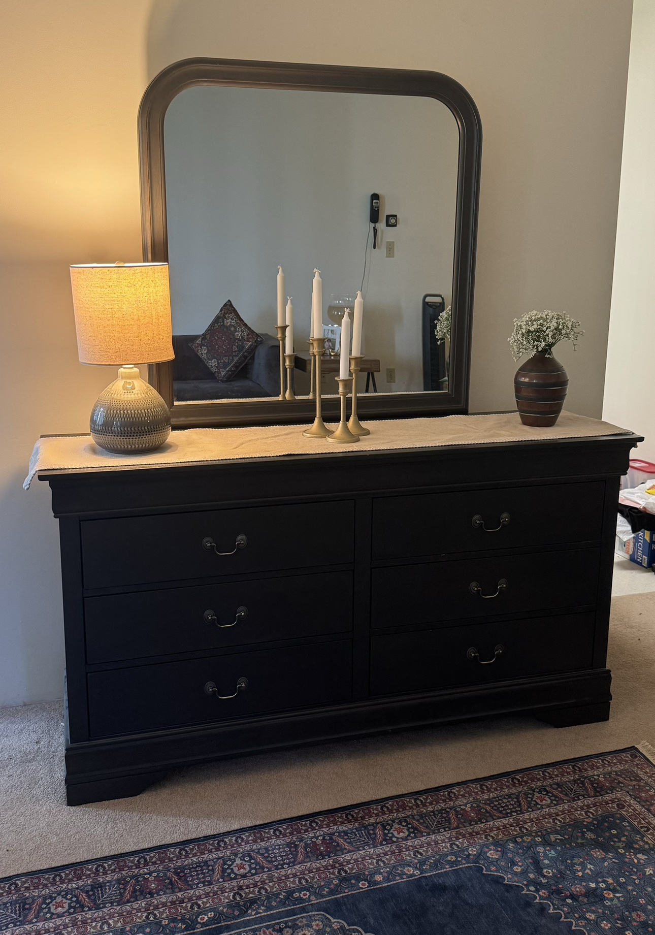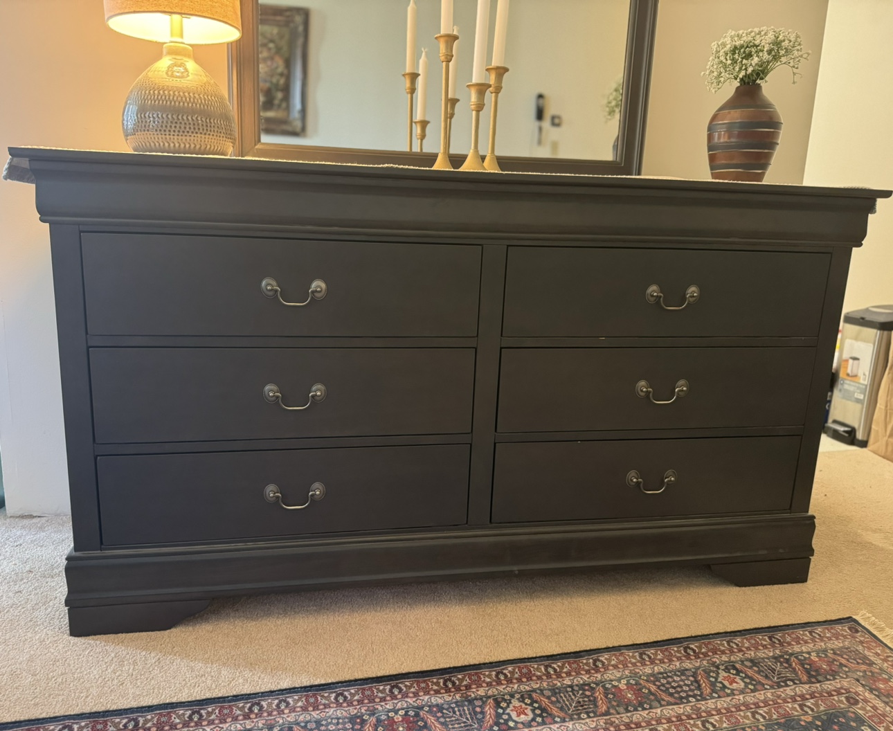 A stunning dresser with an attached mirror ( it can be separated) in brand-new condition. This elegant piece is perfect for any bedroom but, unfortunately, too large for our new place. Originally purchased for around $800 + tax, it's now available at a great price.