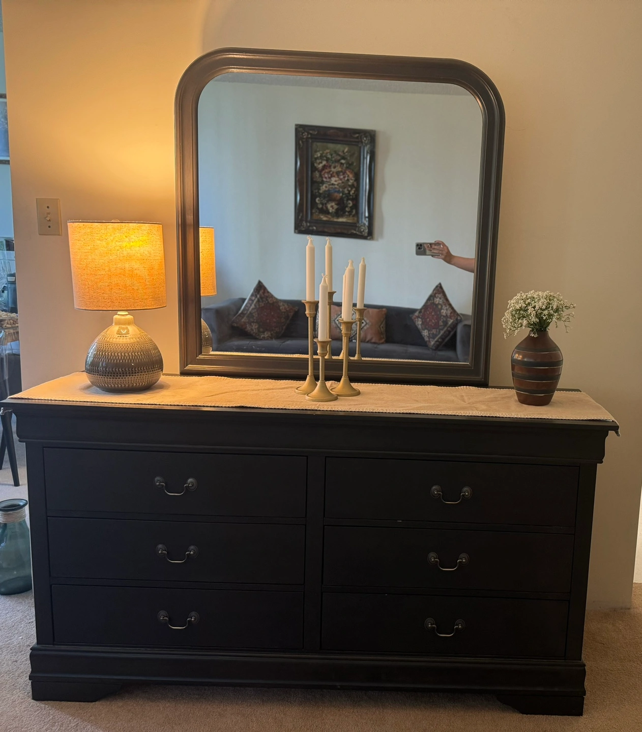 Solid wide dresser with mirror