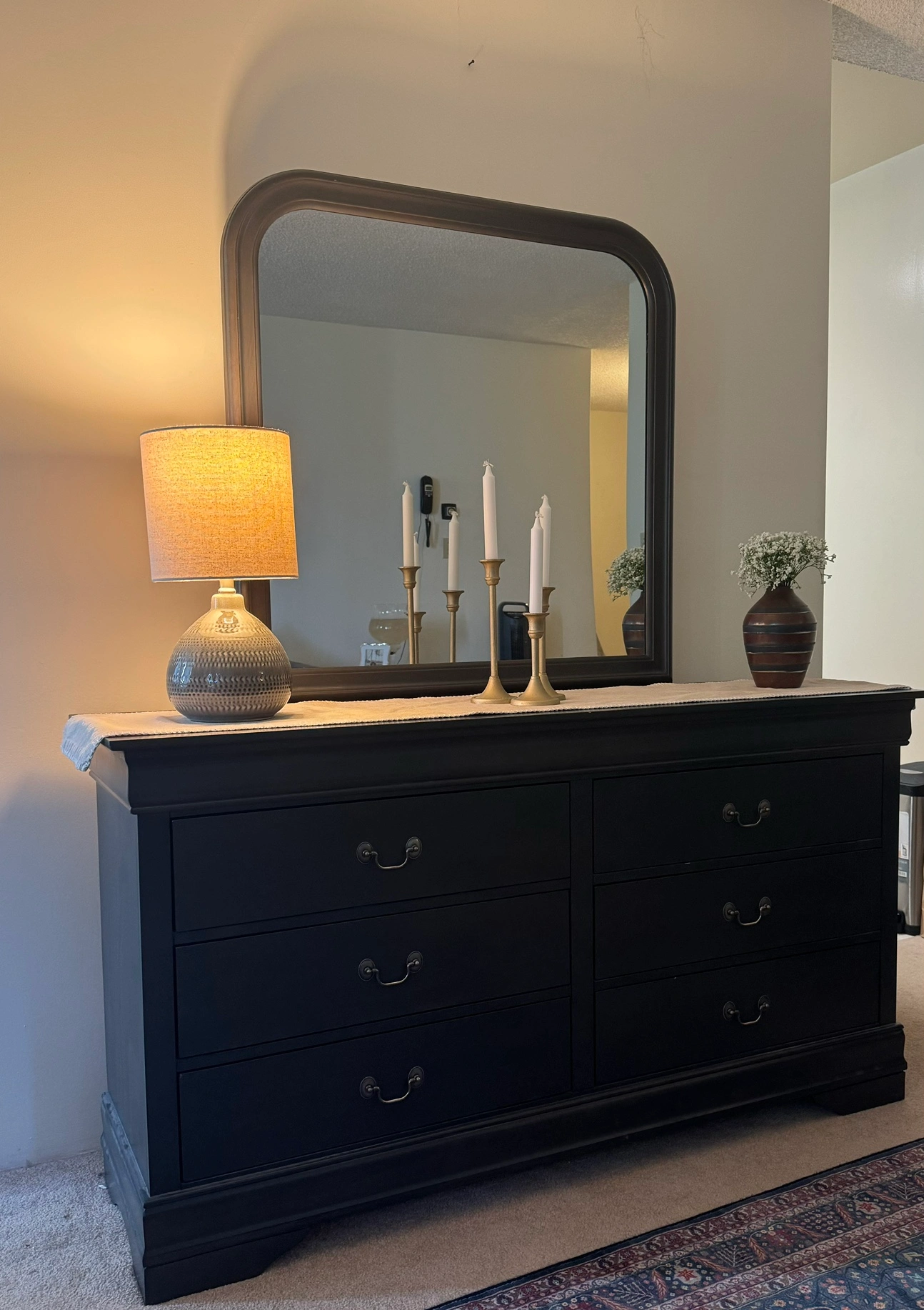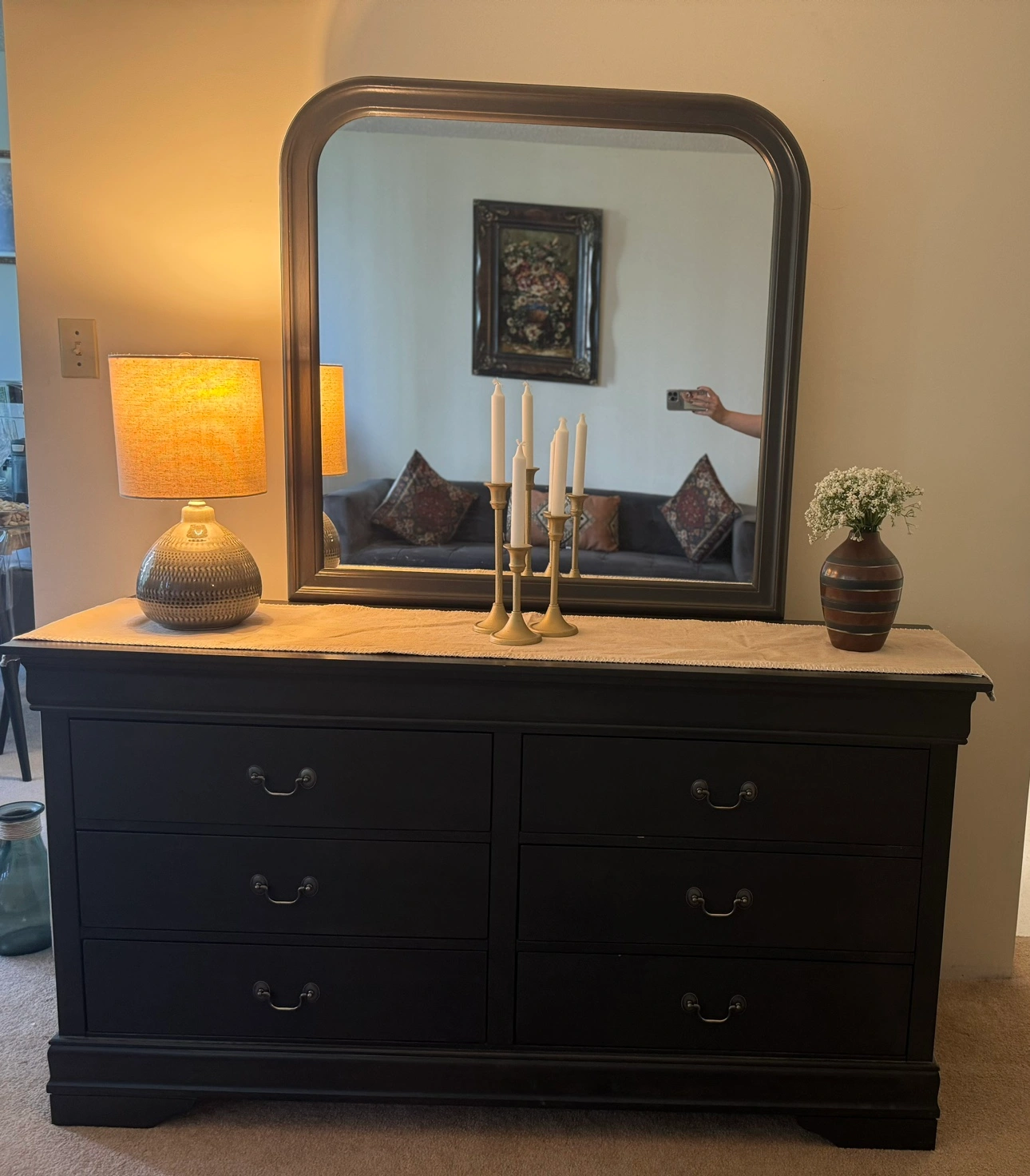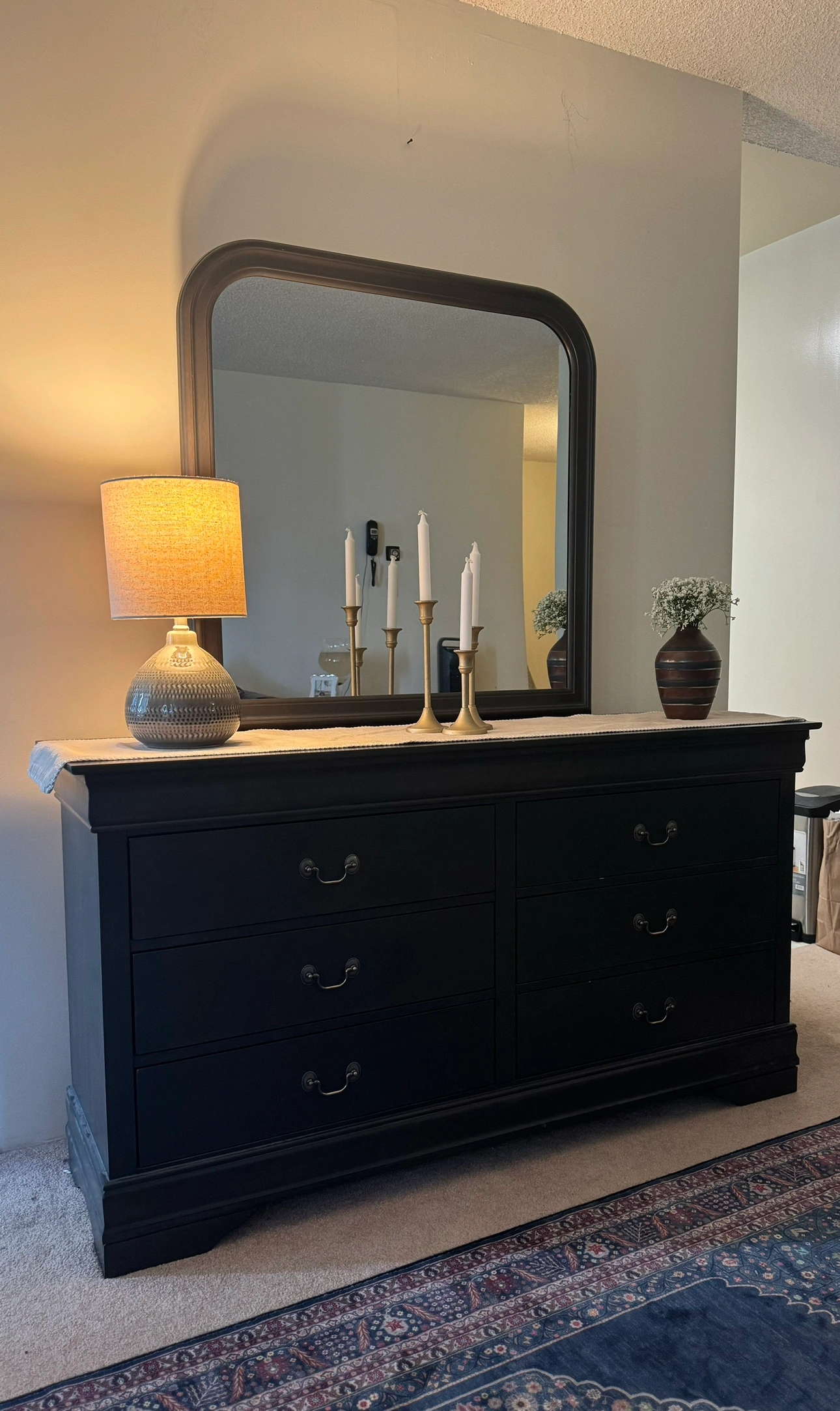 A stunning dresser with an attached mirror ( it can be separated) in brand-new condition. This elegant piece is perfect for any bedroom but, unfortunately, too large for our new place. Originally purchased for around $800 + tax, it's now available at a great price.