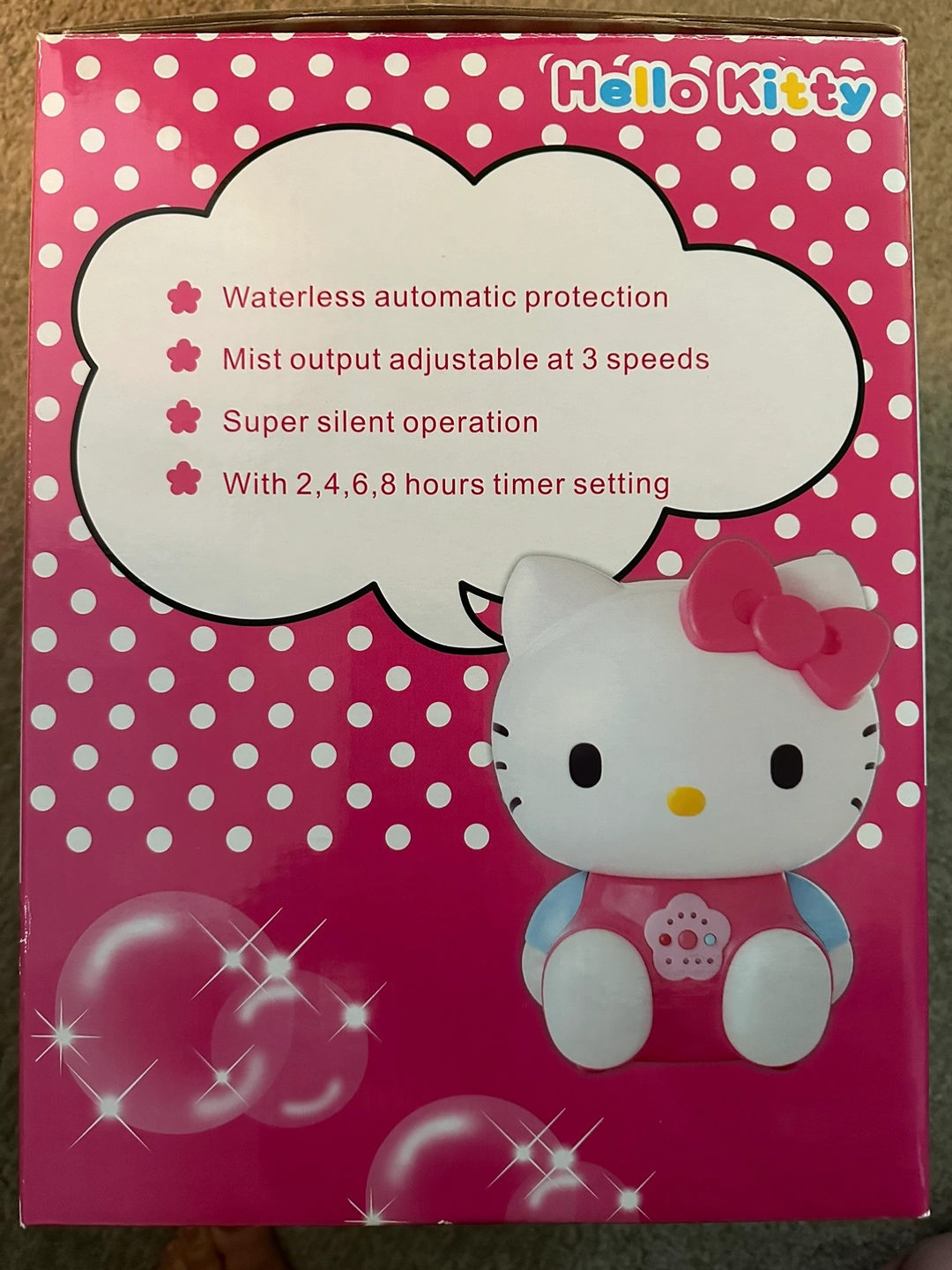 has a capacity of 1.8 litres and a duration of 9 hrs, automatic shut off when runs out of water, very silent, ideal for kids room or anywhere you want it
