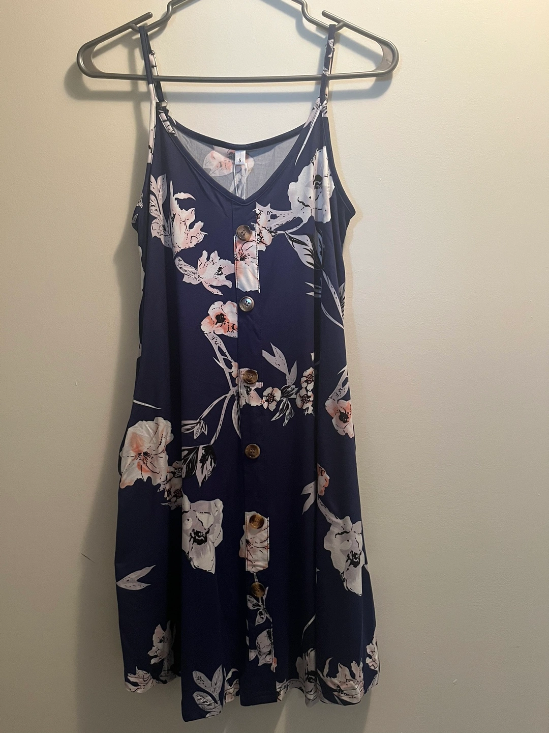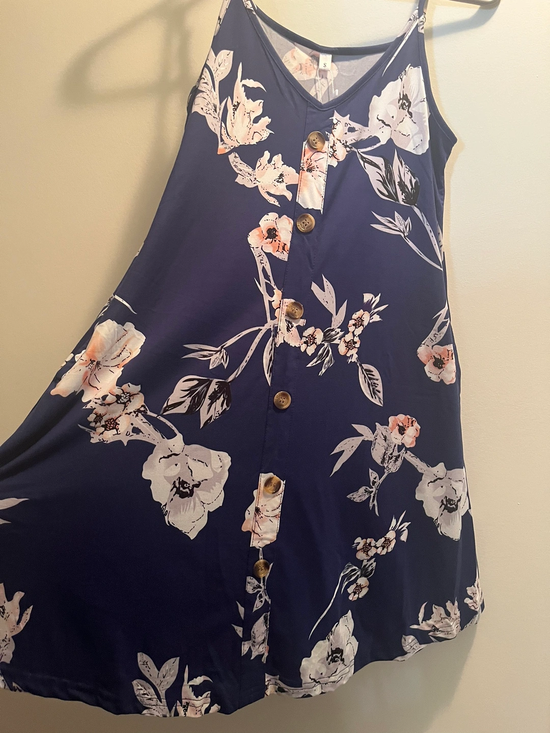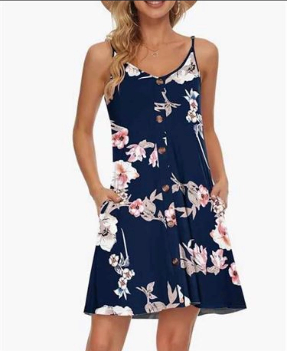 Fashion-simple design: Adjustable Spaghetti Strap,Sexy V Neck Sleeveless, Swing dress,Floral Print,Button Front, two handy side pockets you'll love, make you have a relax felling. The swing style and the cute drape can hide your bumps area well if you like loose. Small volume & Quick drying & without wrinkle and shrink, it is easy to care on daily life or travel.