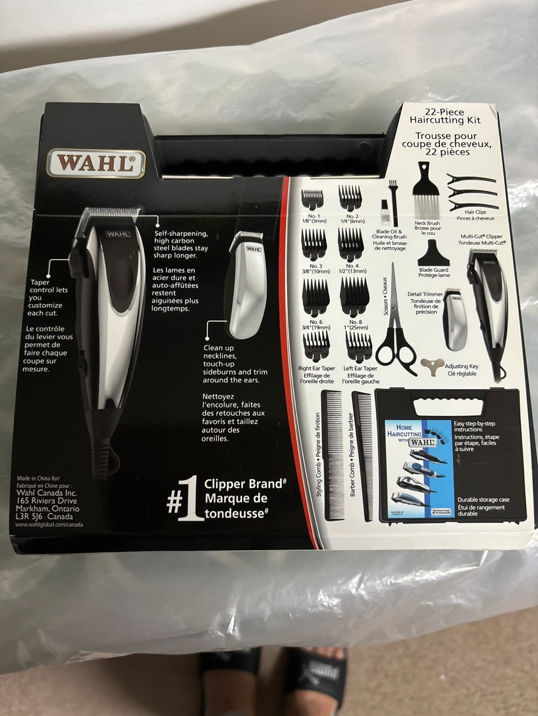 Never been used. Easy home haircutting with step by step instructions and 22 pieces hair cutting kit.