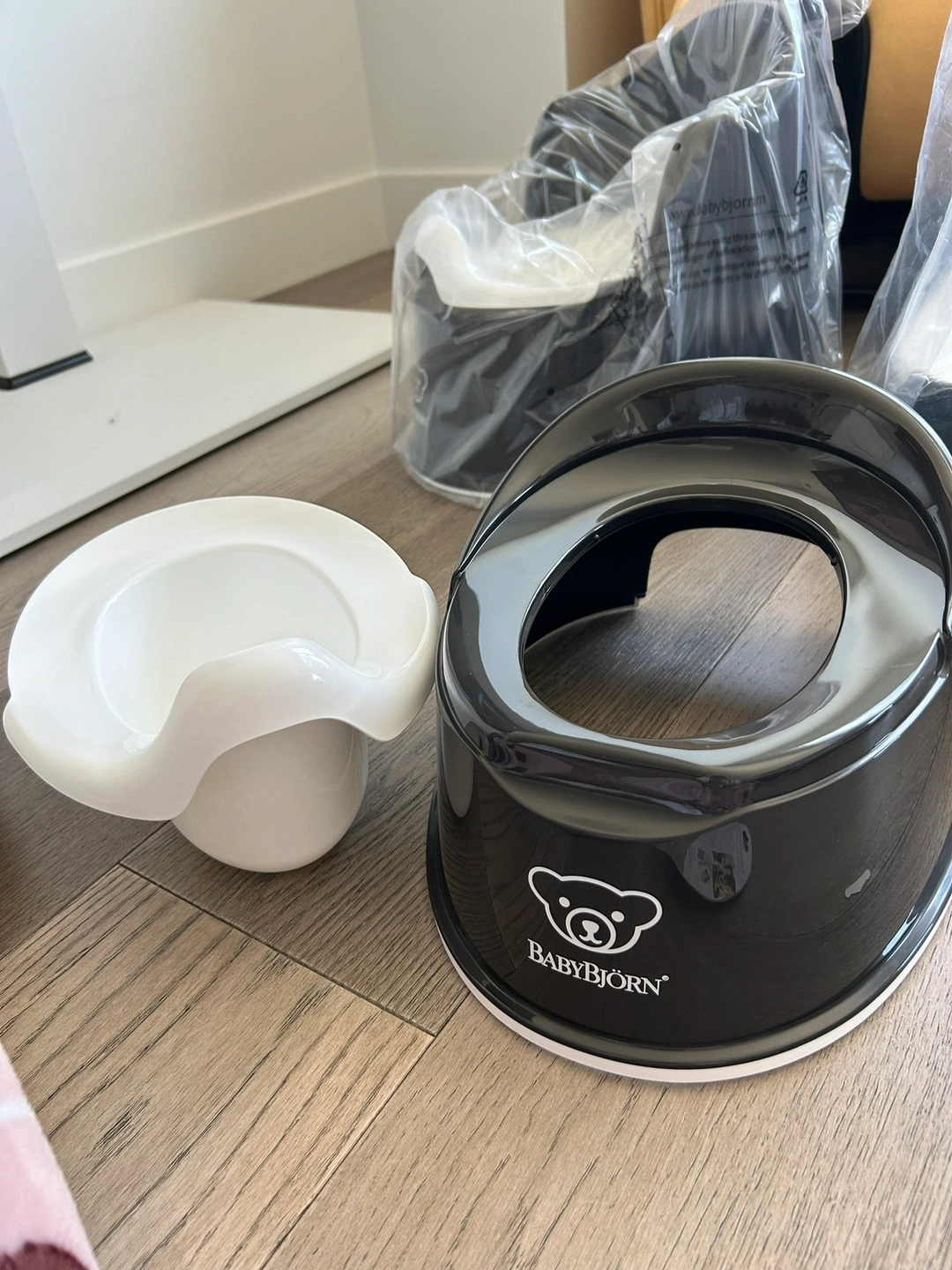 Brand New, Never Used. BabyBjorn Smart Potty in Black. Super lightweight with anti-slip bottom. The front splashguard prevents spills. PVC and BPA free.