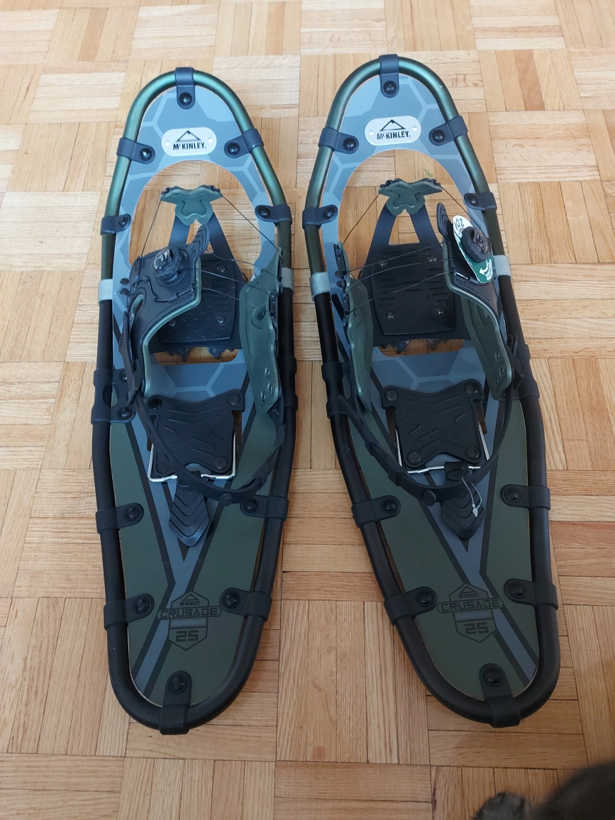 25" aluminum frame snow shows. Easy binding with adjustable strap and cable system. Flexible shoe mount and grips.