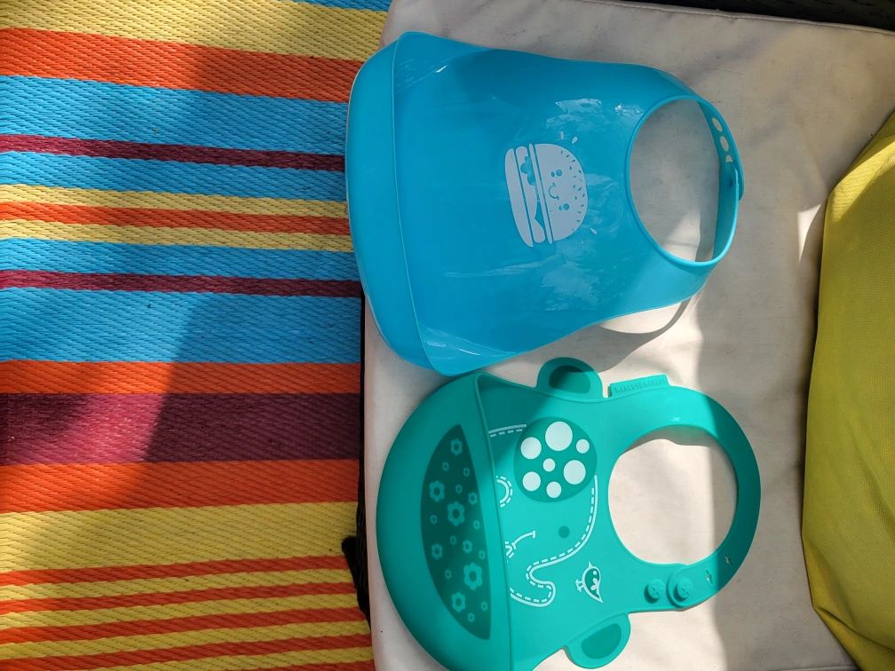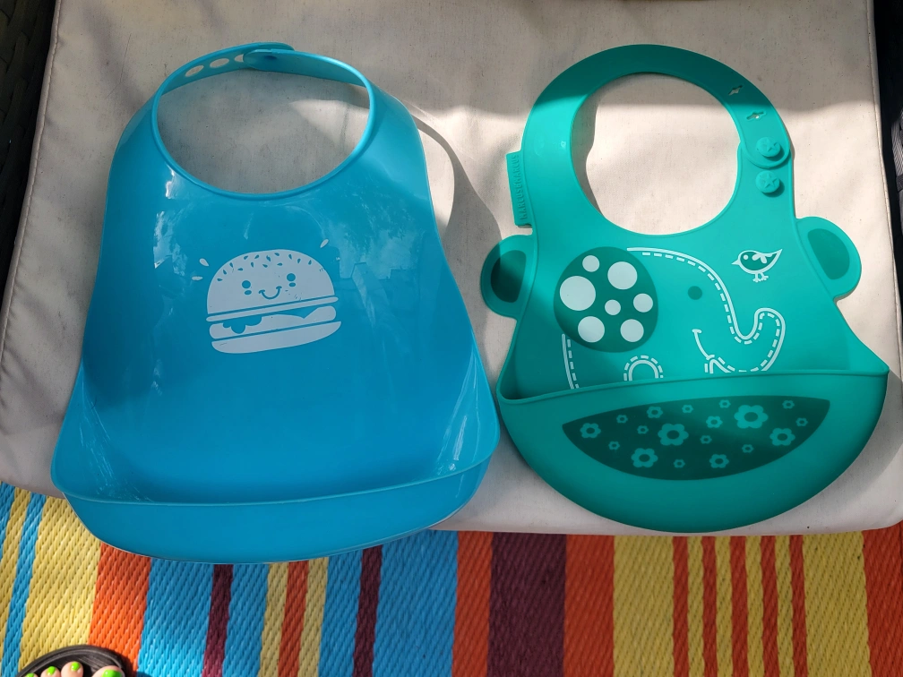 I have 2 feeding bibs. 1 is plastic, and 1 is silicone. Both have never been used. I am selling both together. Cash only, please.