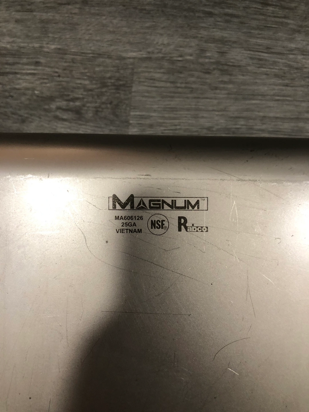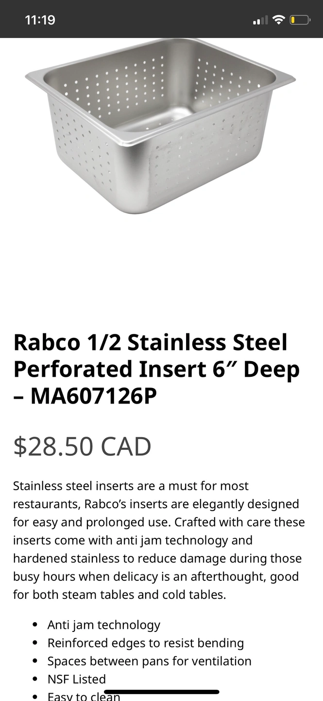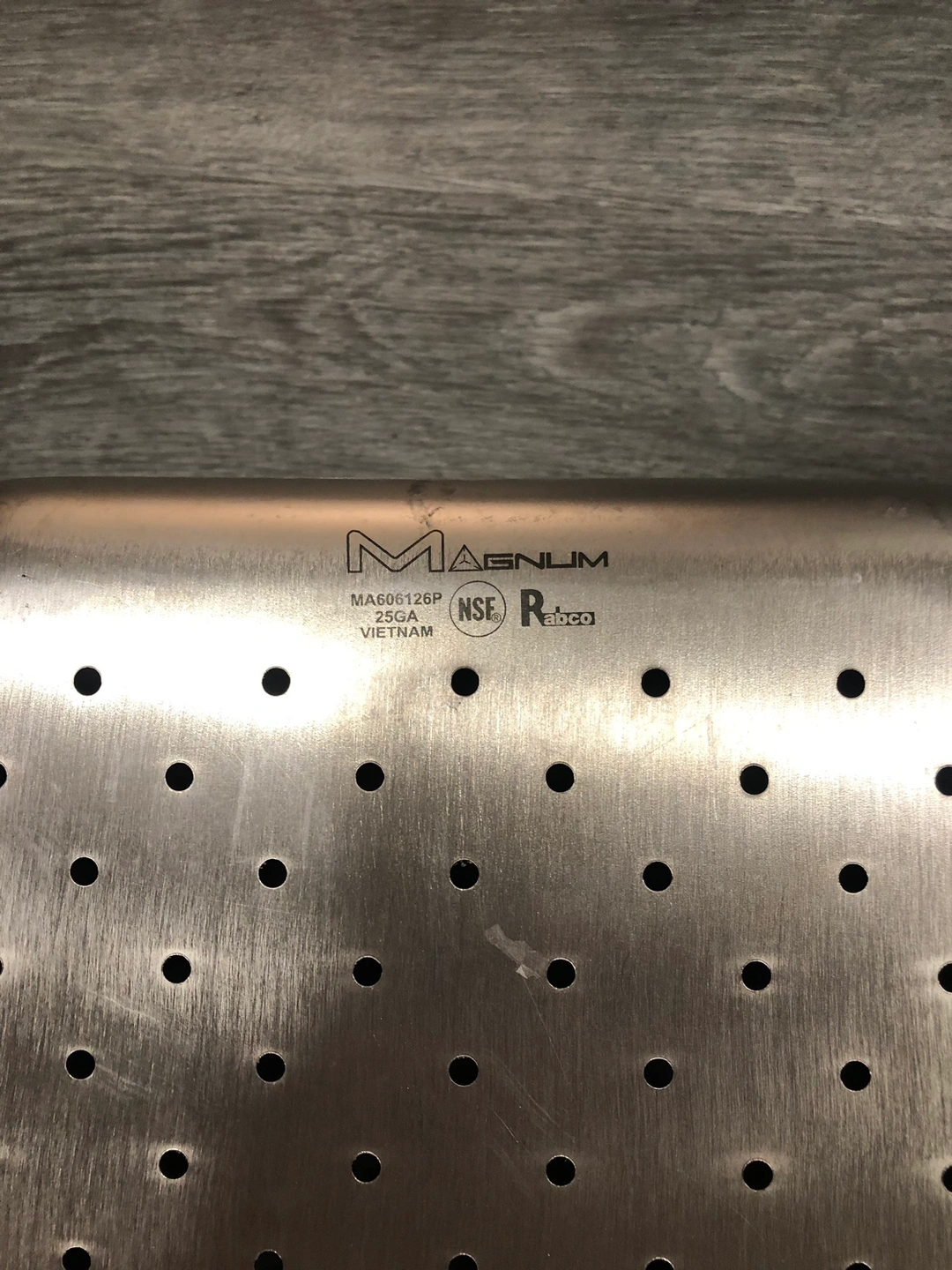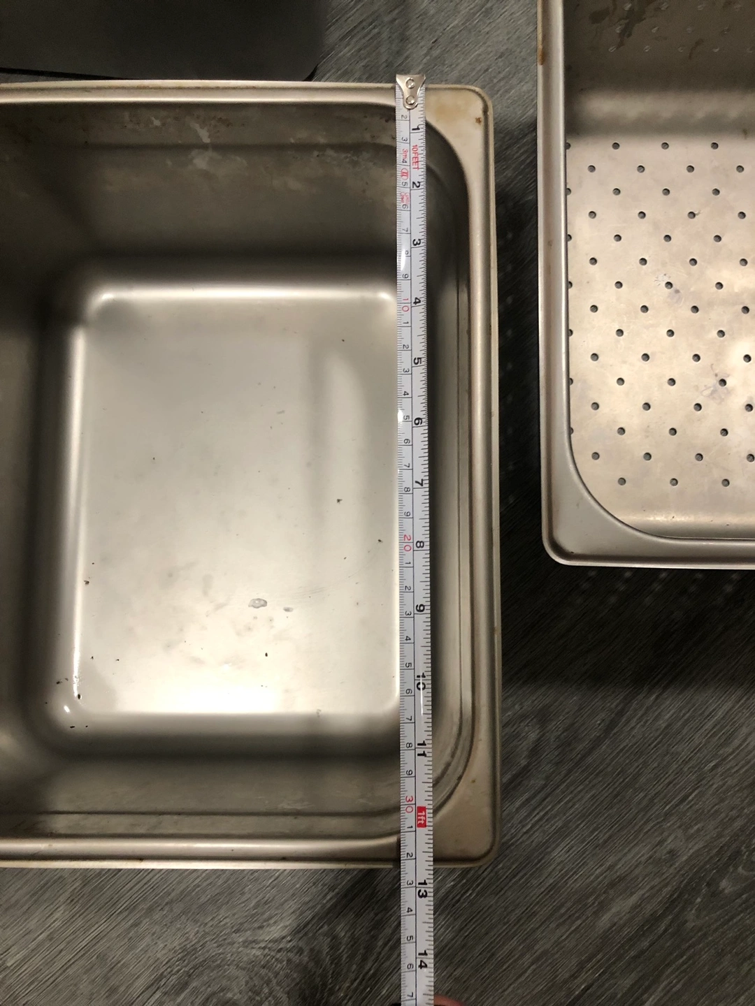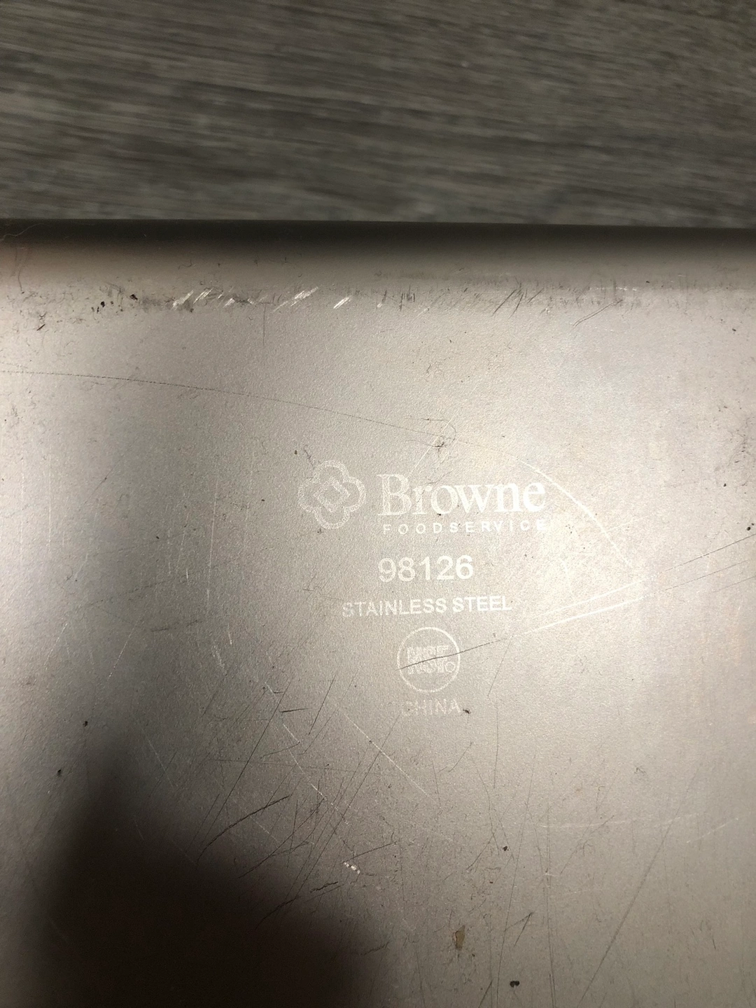 Commercial kitchen stainless steel steam pans, half size and 6” deep. They nest together well and have no functional flaws.