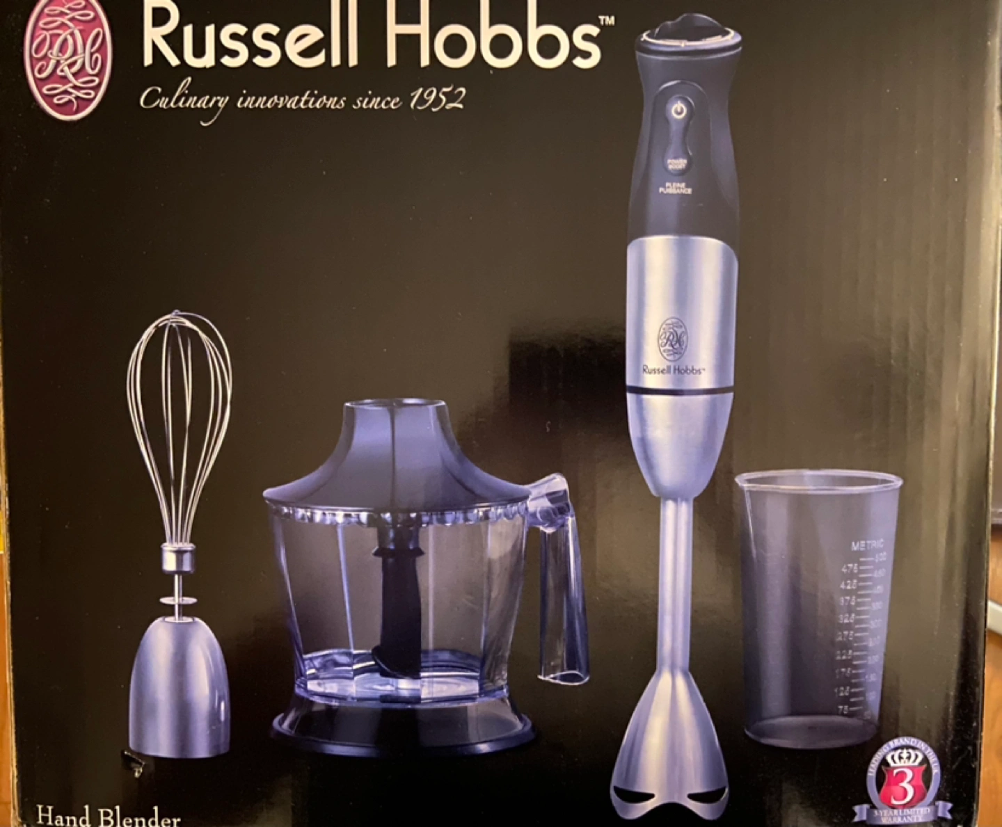 Russell Hobbs 4-in-1 Hand Blender (multi-speed immersion w/ power boost, whisk & food chopper bowl, 500ml beaker) *** Brand new in original box - never used ***