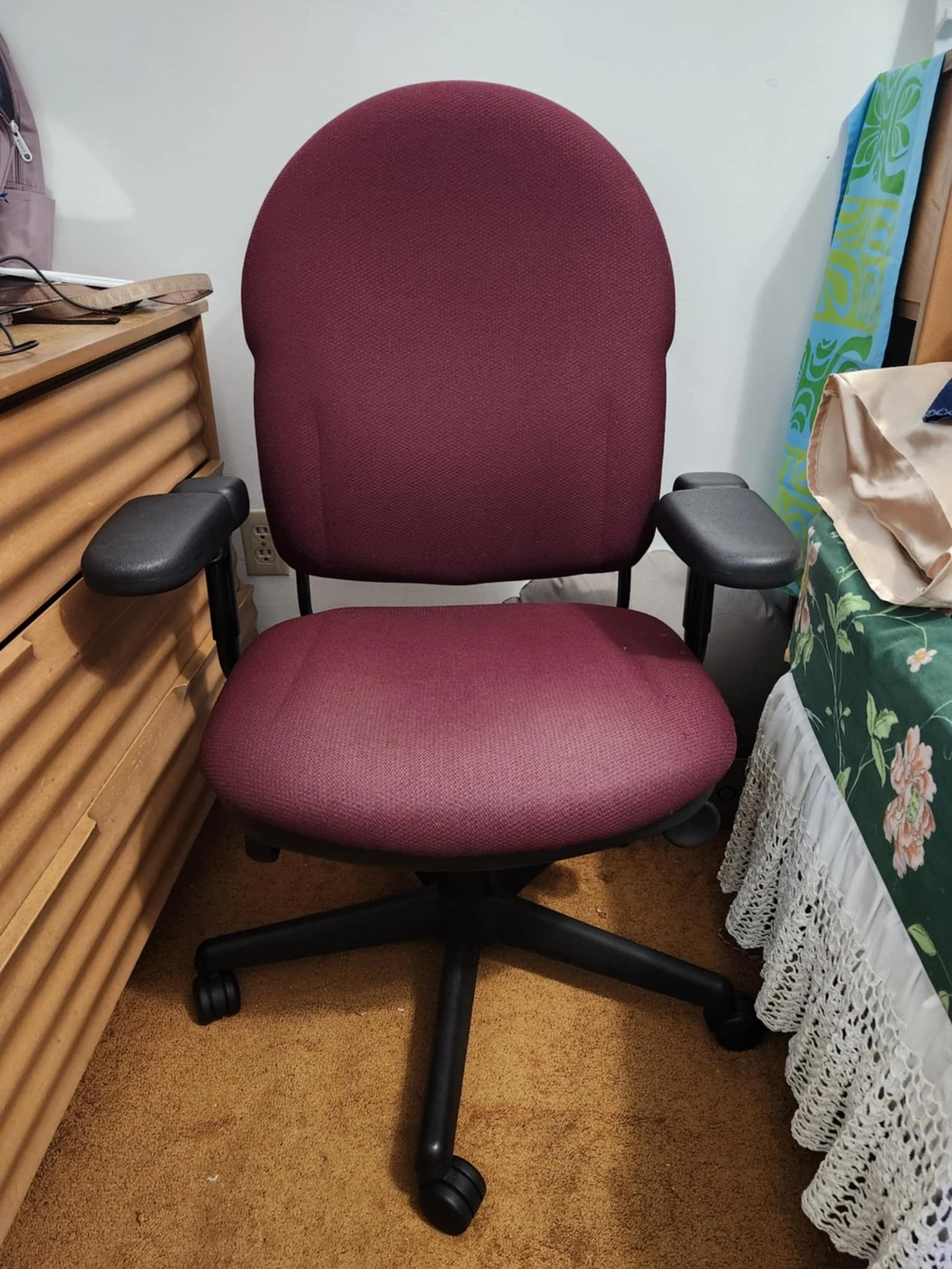 Rotating. Adjustable height. With arm rest. No defect. Very comfy. Clean.