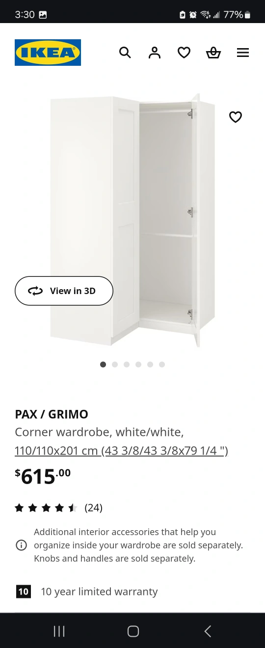 PAX/GRIMO corner wardrobe, white, NEW