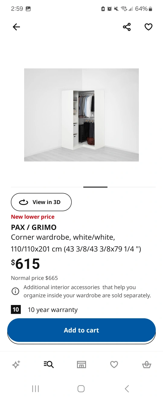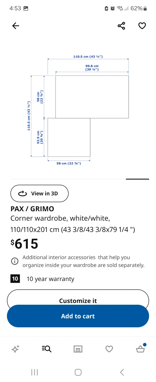 This is a brand new perfect condition wardrobe/corner closet combination.