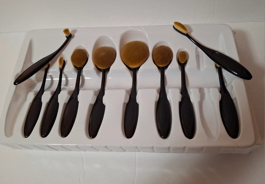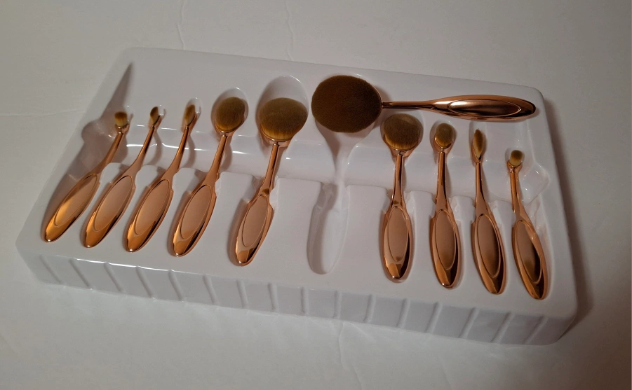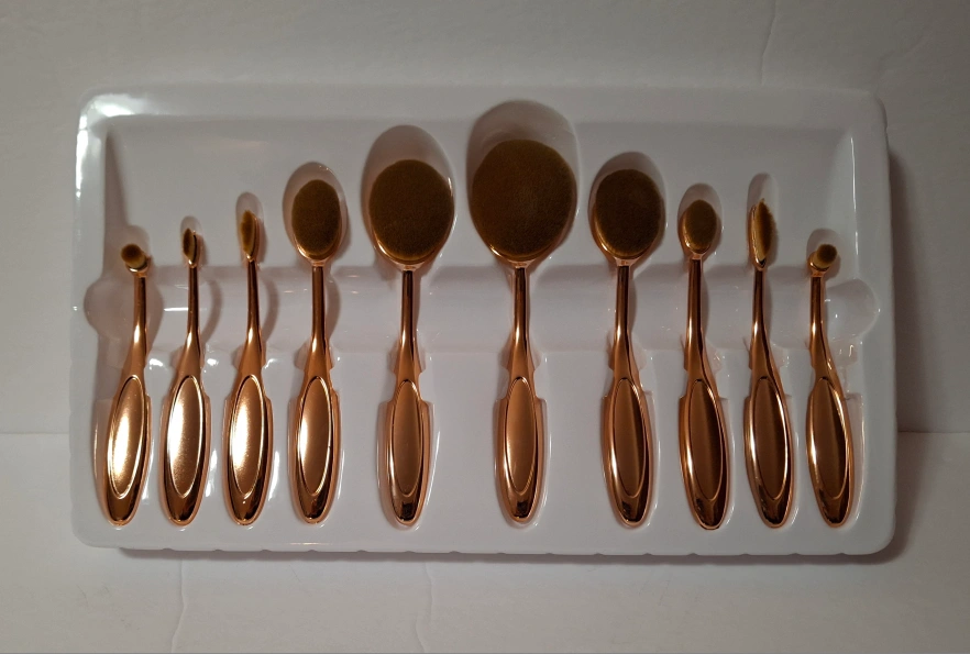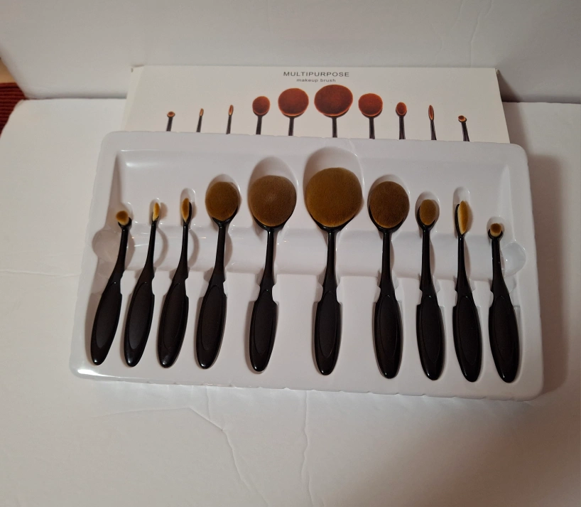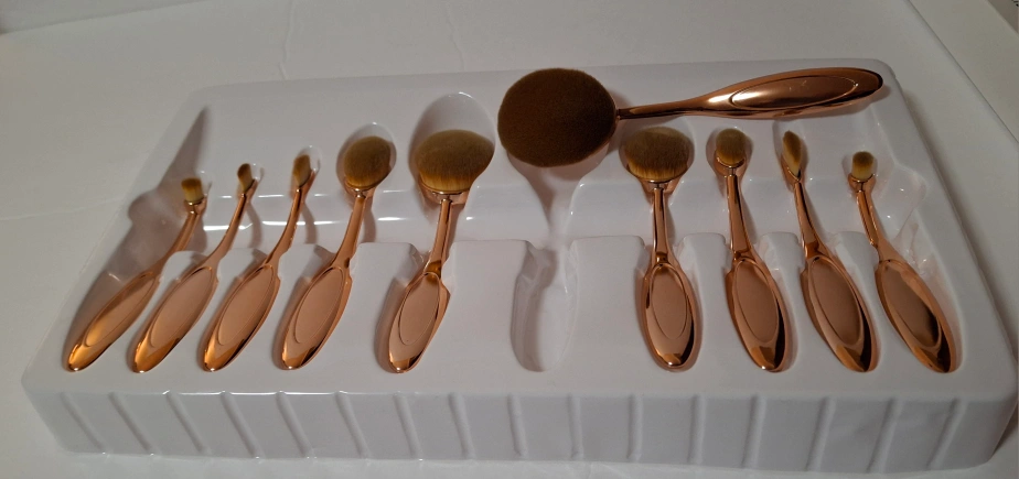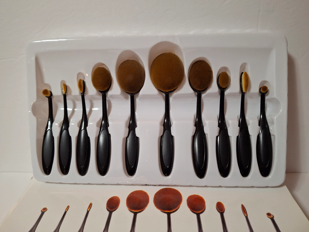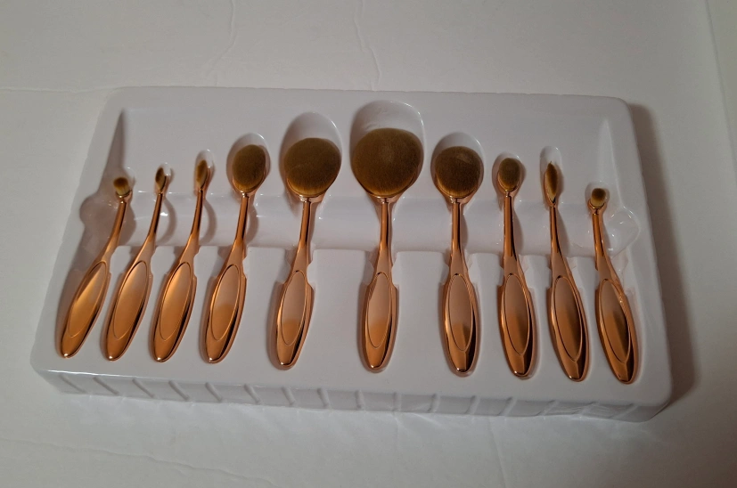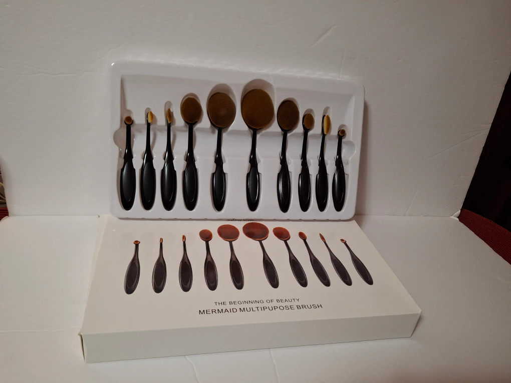 There are 10 different brush head sizes in one set, new and packed. One set is of dark brown and the othere of rose gold.