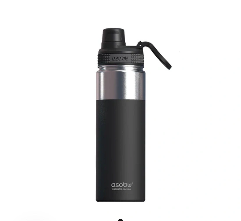 This Asobu black alpine flask vacuum sealed bottle is stainless steel and copper lined. Retails for $38.99 CAD.