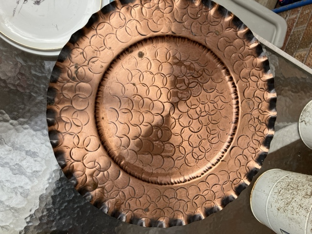 1000+Beautiful stamped copper plate, large at 19”D., cash only P/up in Thornhill, Yonge St north of Steeles Ave
