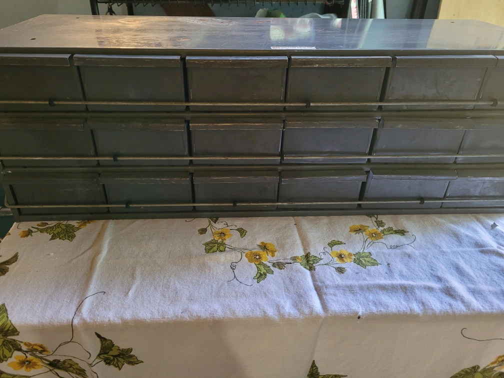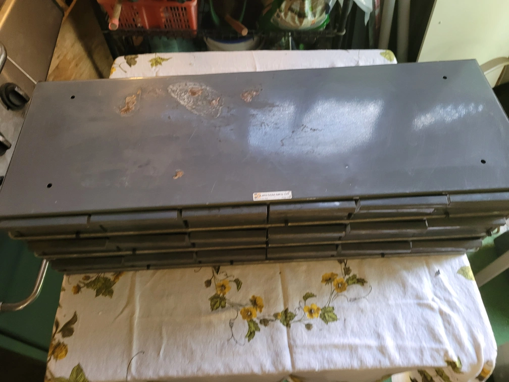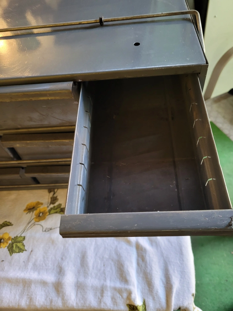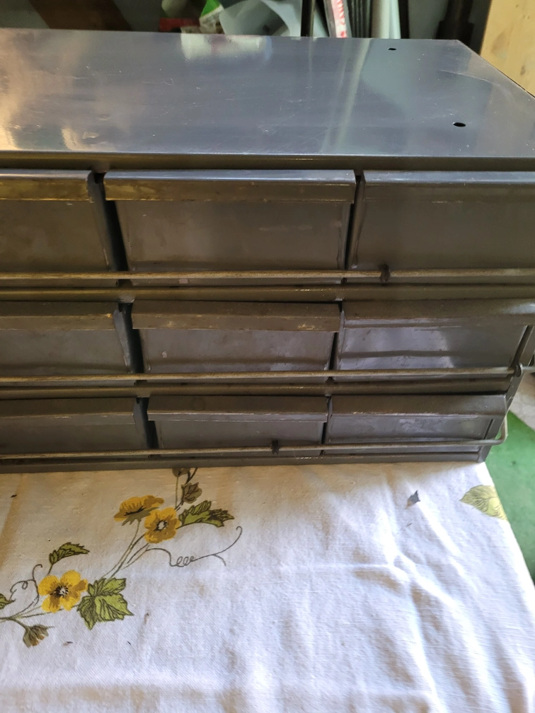 Durham MFG 18 drawer cabinet. Good for shop or work vehicle mounting. Store and organize material or parts, spacers included. Screws, nuts, bolts, clips etc. Great for contractor, builder, electrician, hvac etc.