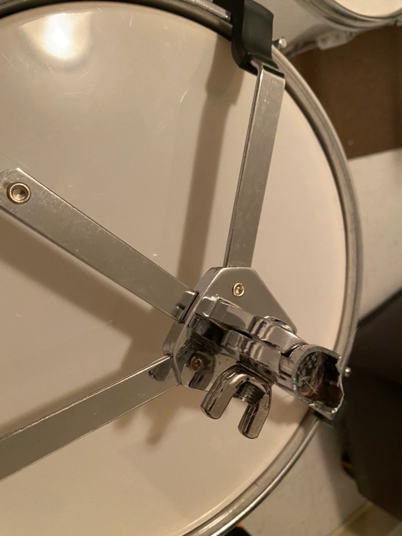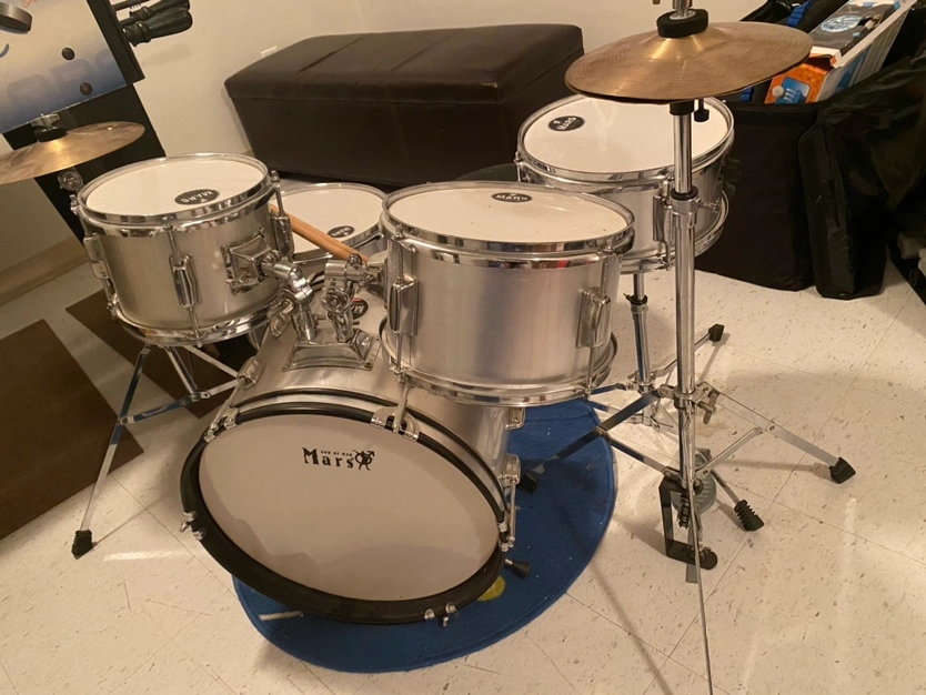Kids sized drum kit for some fun times raising future rick stars. Also great to keep at the grandparents house. The snare drum stand broke and can be replaced, the rest is still useful.