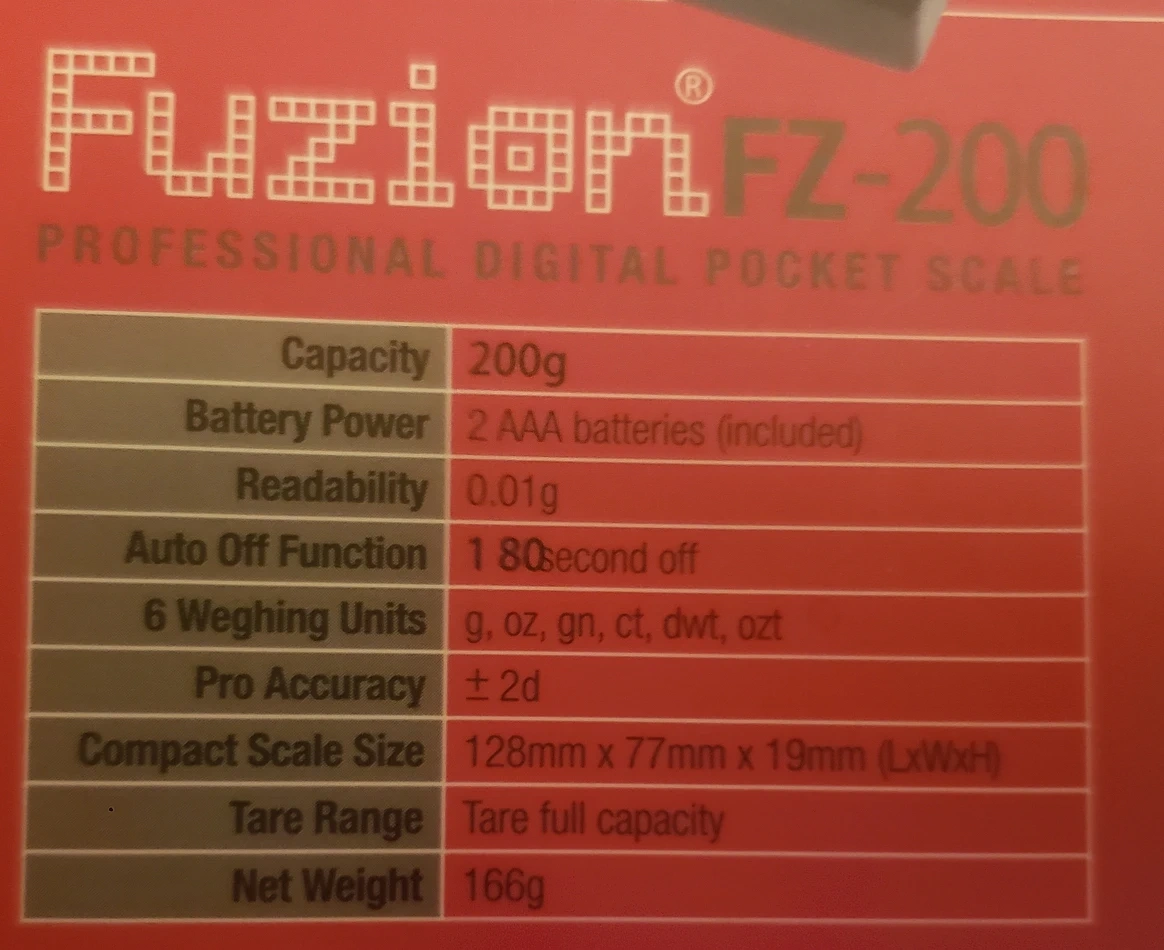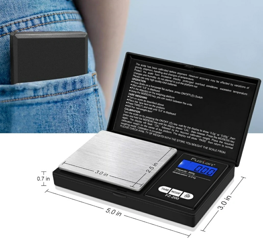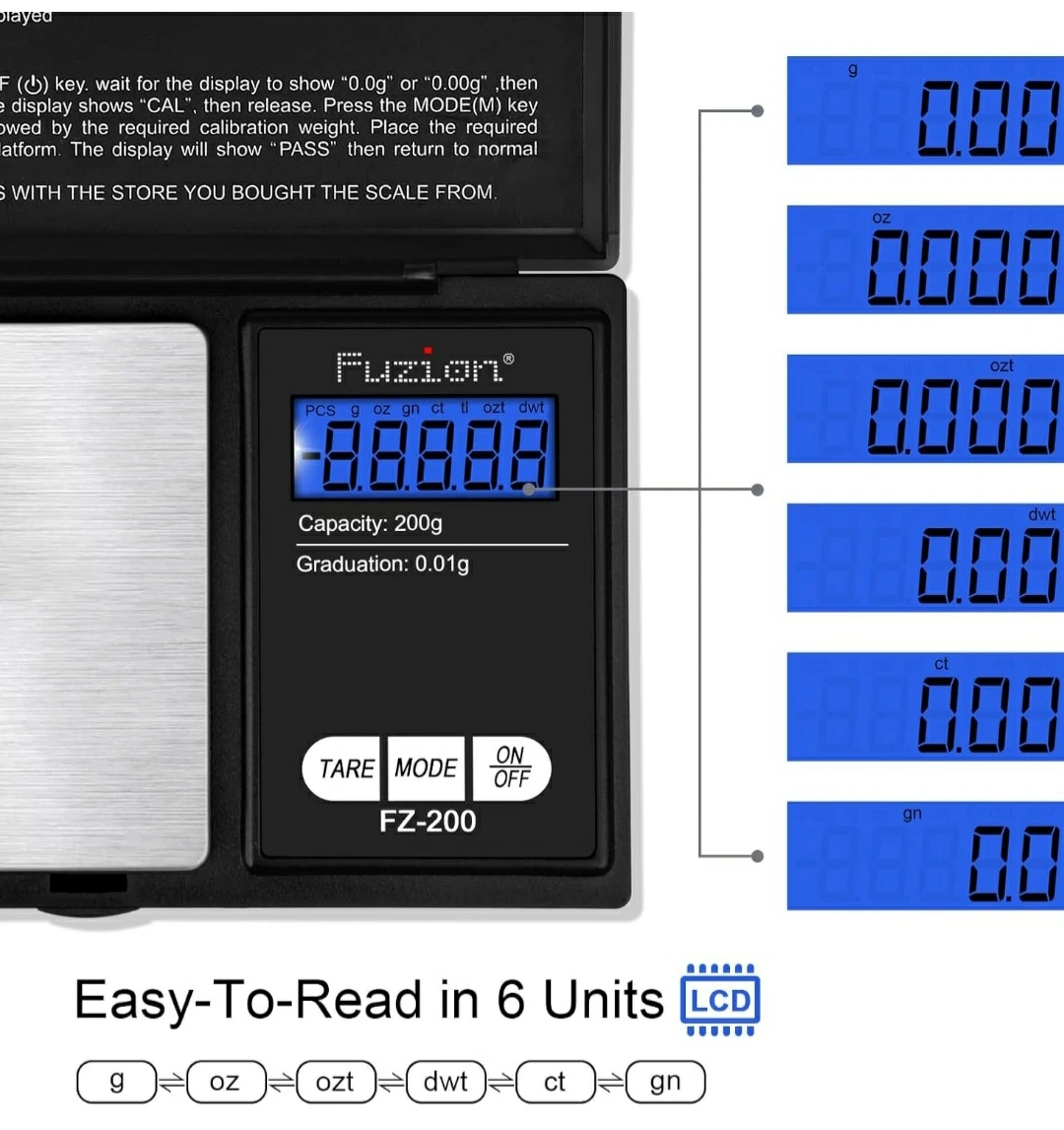 Fuzion Digital Pocket Scale, 200g/0.01g, Mini Gram and Ounce Scale, Travel Food Scale, Jewelry Scale with Backlit LCD Display, Stainless Steel, Tare, Battery Included