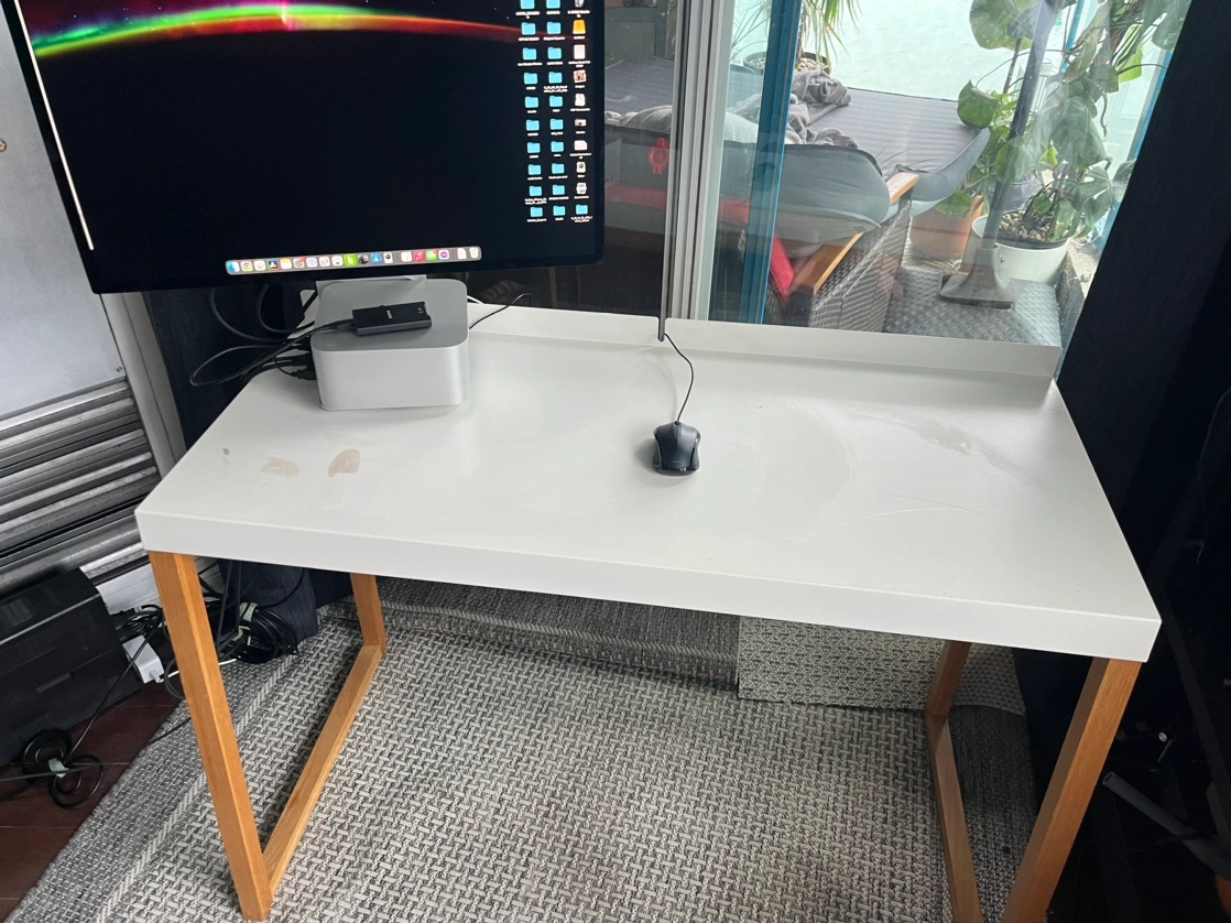 Desk features cord management slot that is perfect for tidying up the work surface.