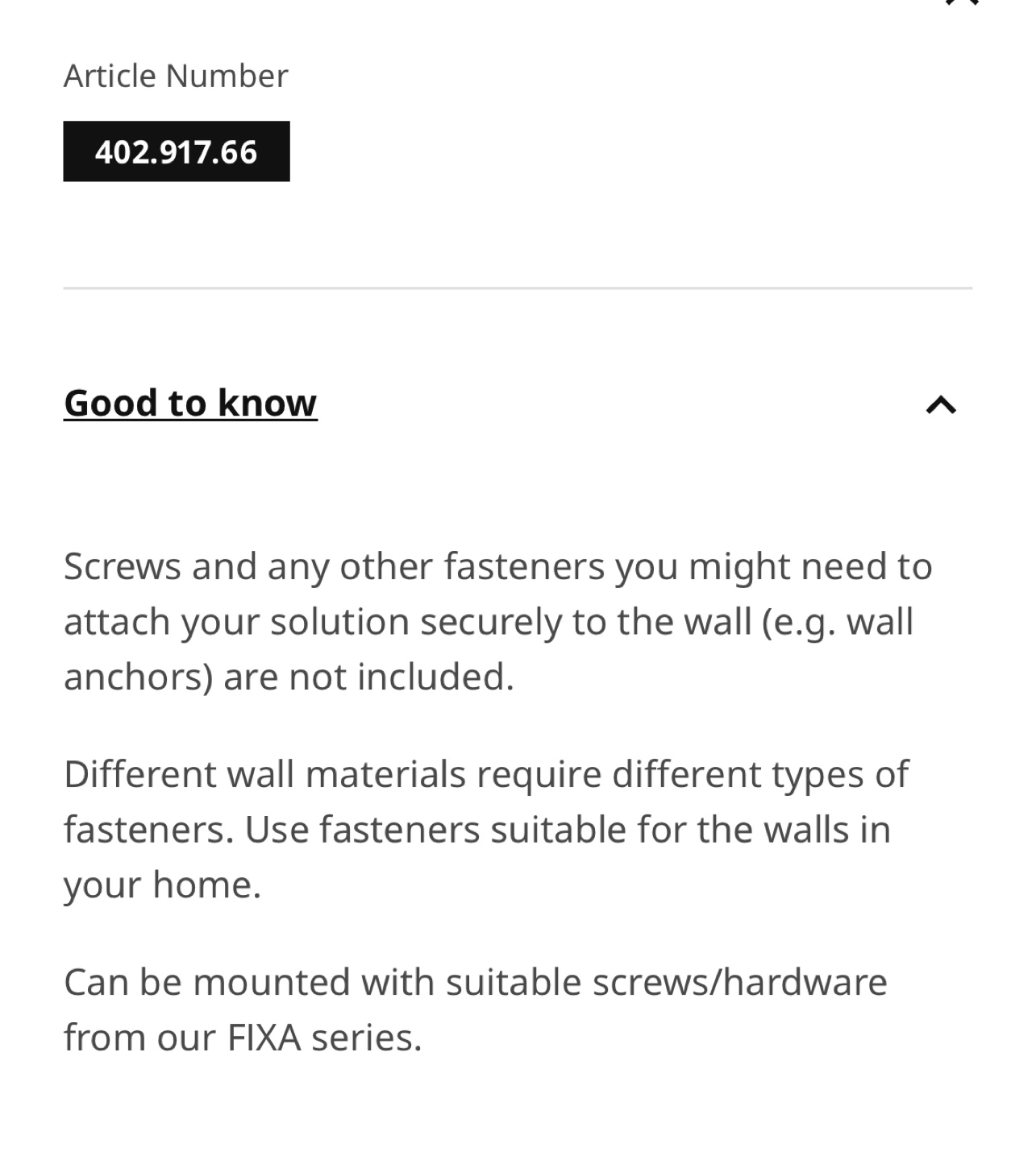 **Note:** Screws required to mount the ledge to the wall are not included and will need to be purchased separately by the buyer. Please refer to product page for specs on material, mounting instructions and safety/compliance guidelines.