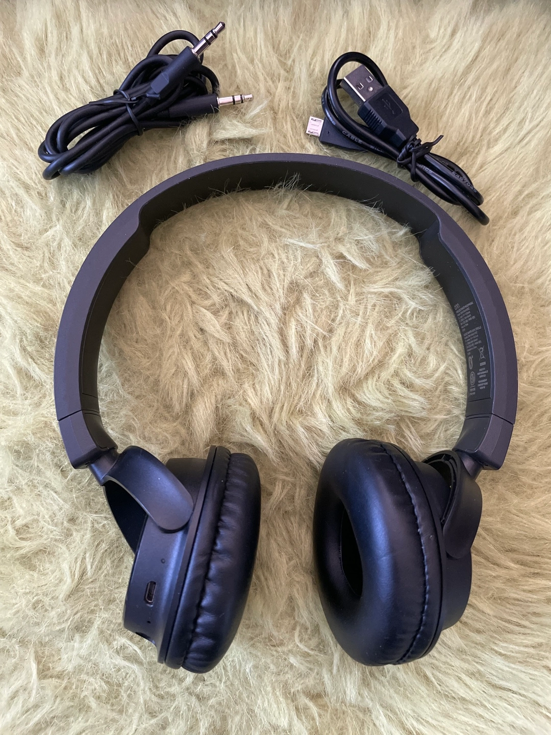 670Onn wireless Headphone Bluetooth Technology streams audio Lightweight 1 USB cable 1 auxiliary cable
