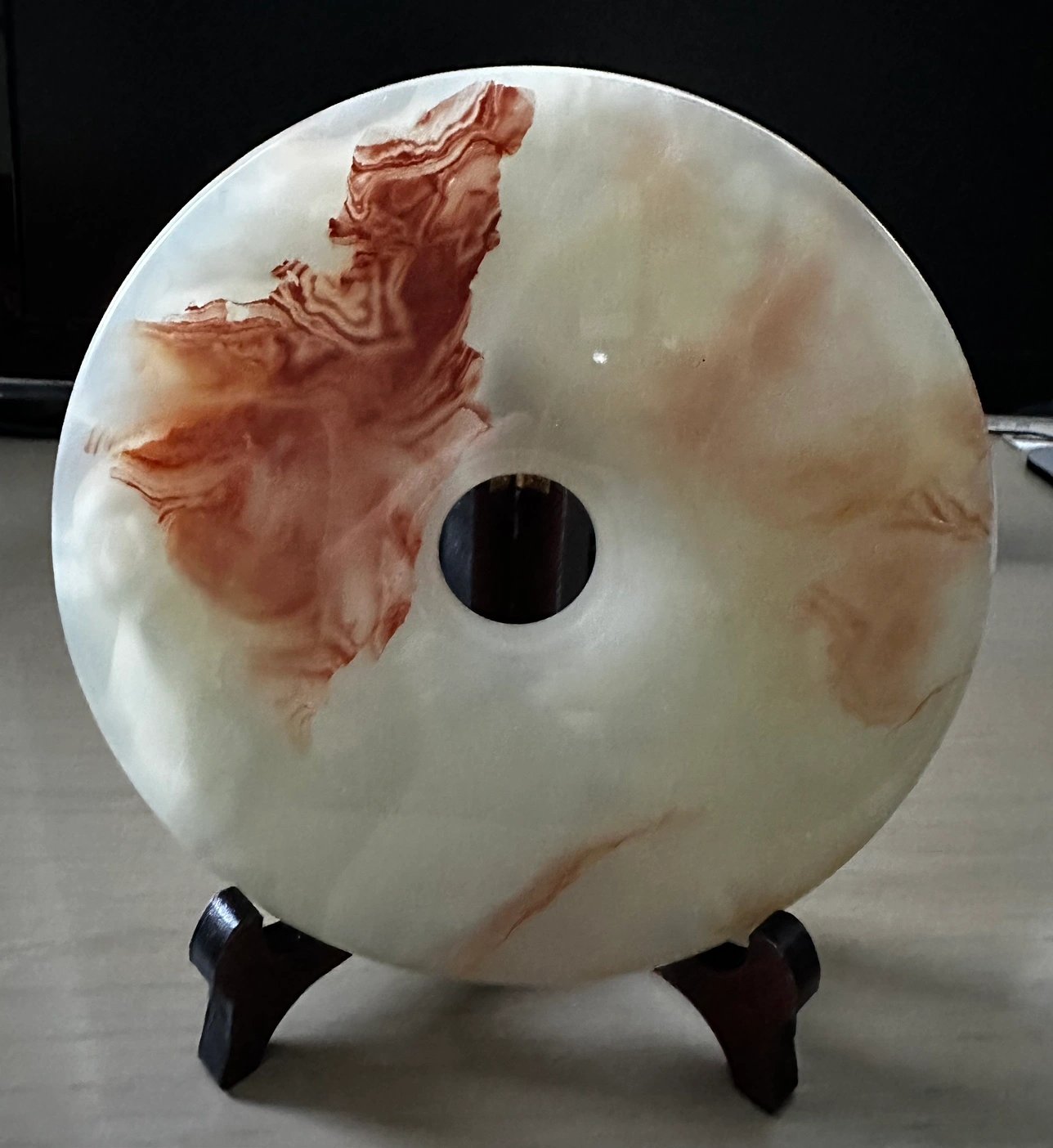 Afghanistan Jade Stone Blessing and Lucky Charm on Stand, great for home decorations and house warming, pix showing front and back