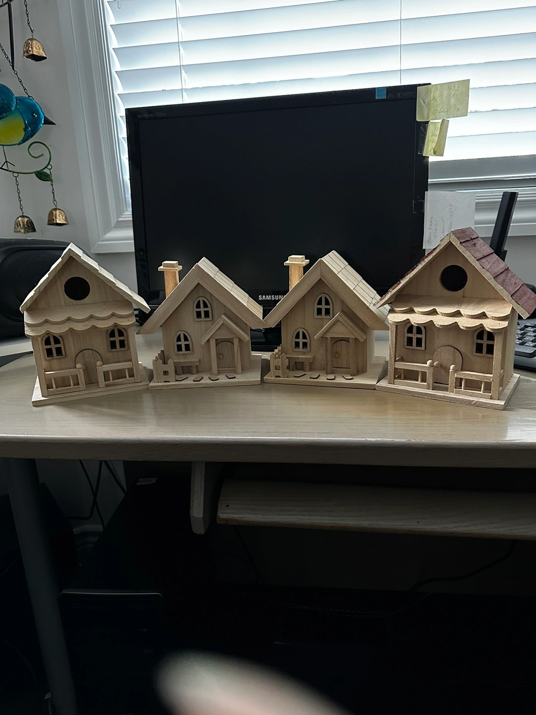 ⚽️Bundle of 4 little wooden houses, funs for kids to paint colours on during Summer holidays. Original price was $4 each house
