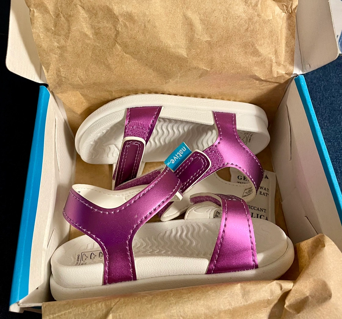 Never worn, brand new in box purple sandals. They are adjustable and lightweight. Size 4