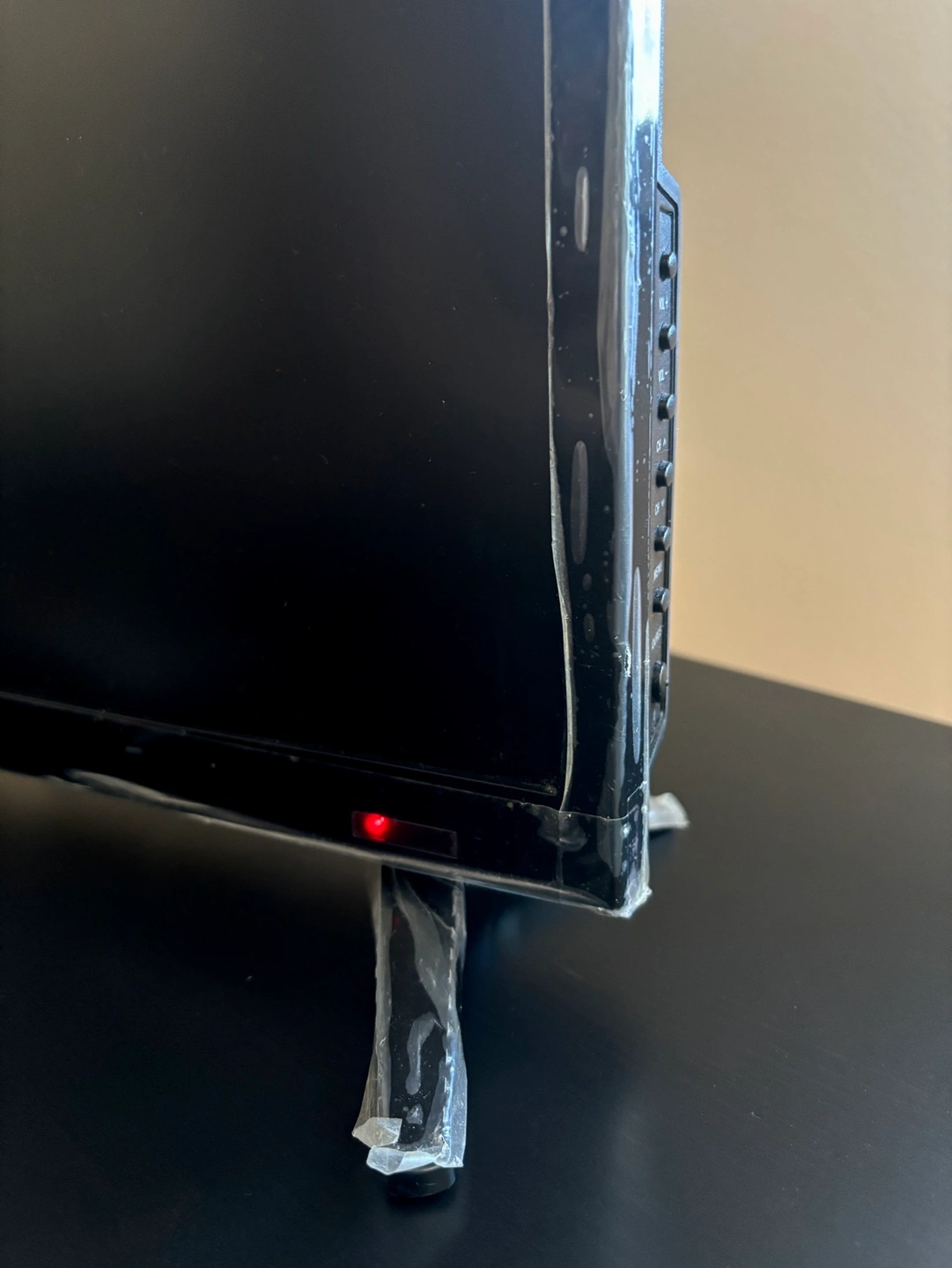 - Still has the original plastic film protection on the TV frame and legs (not on the screen)