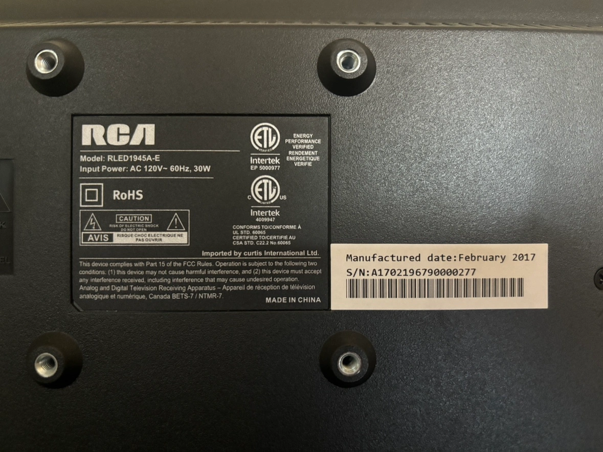 RCA RLED1945A-E screen/monitor with remote. The screen is in great working condition and delivers excellent picture quality. Perfect for a second monitor, guest room, or as a TV for a smaller space.